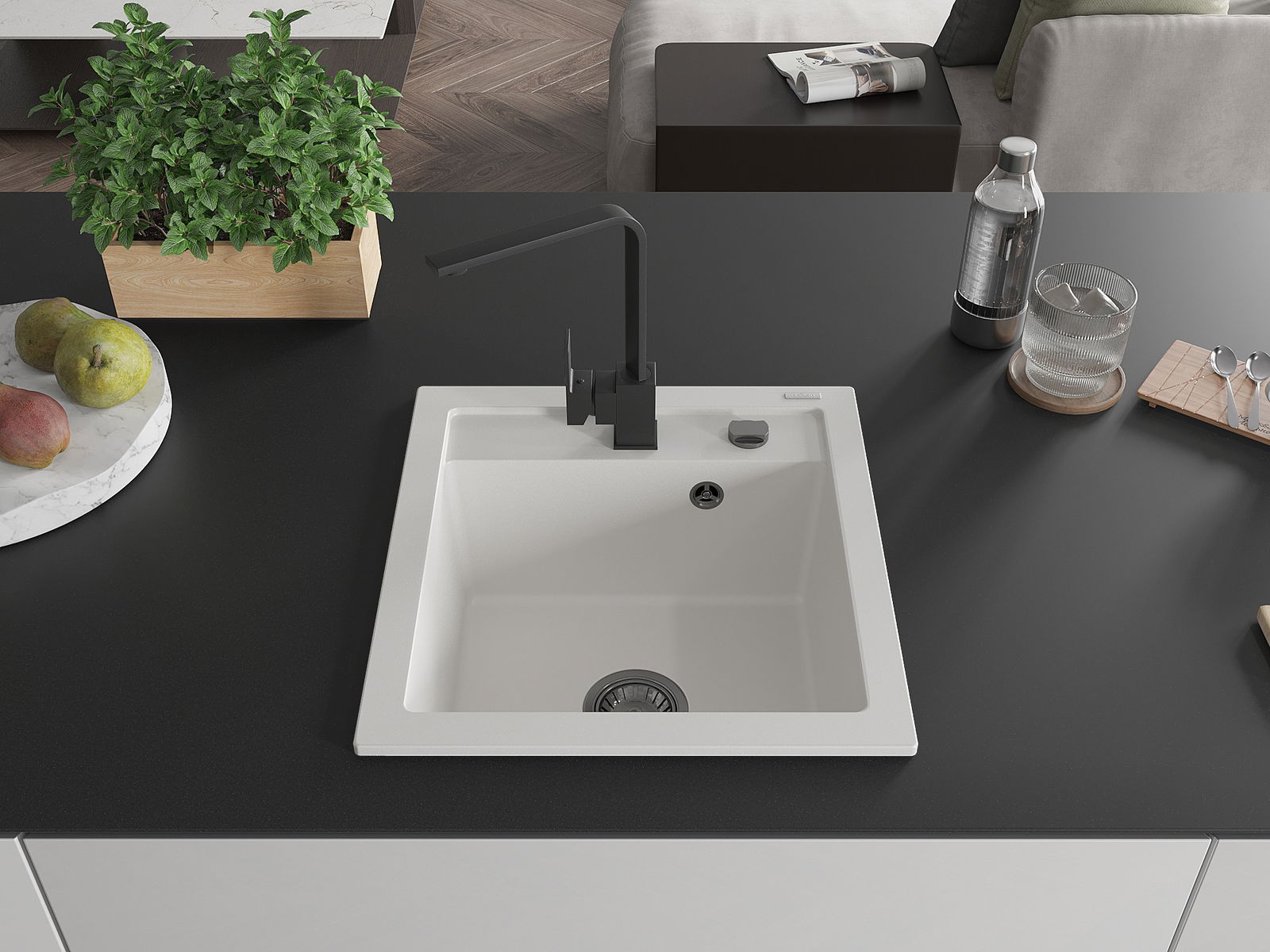 A mosogató kiváló minőségű gránitból készül. Ez egy elegáns és mindenekelőtt minden konyhához praktikus kiegészítés, stílusától függetlenül. A kiváló minőségű és a gránit tartósság biztosítja a sok éves használatát.