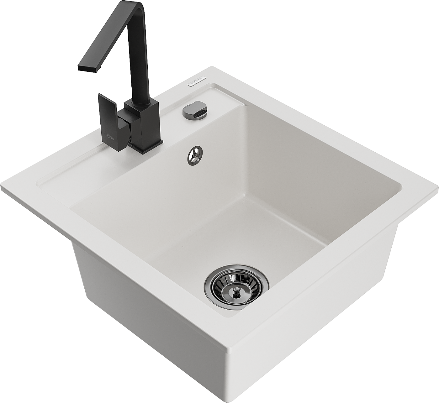 Mexen Vito gránit mosogató 1-medencés Rita konyhai csapteleppel, fehér - 6503-20-670300-70