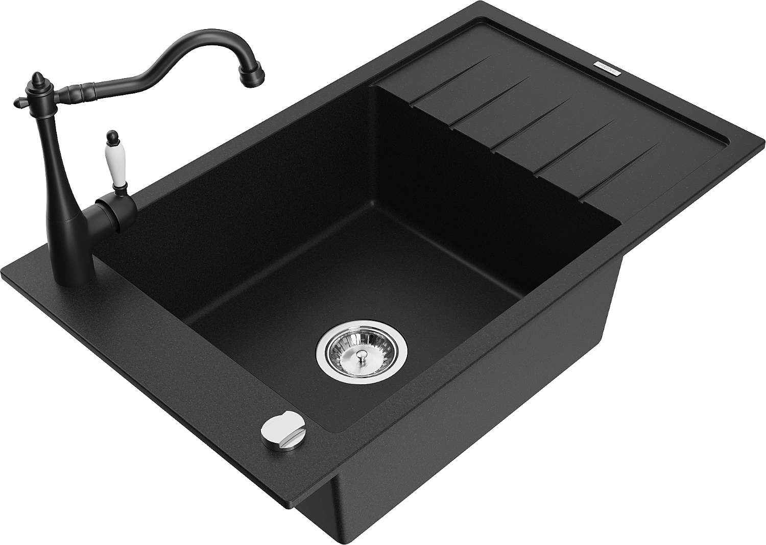 Mexen Elias egymedencés gránit mosogató csepegtetővel és Carla konyhai csapteleppel, fekete - 6511-77-670700-70