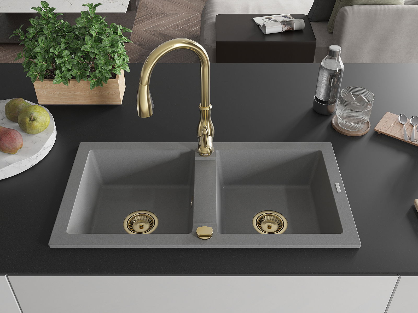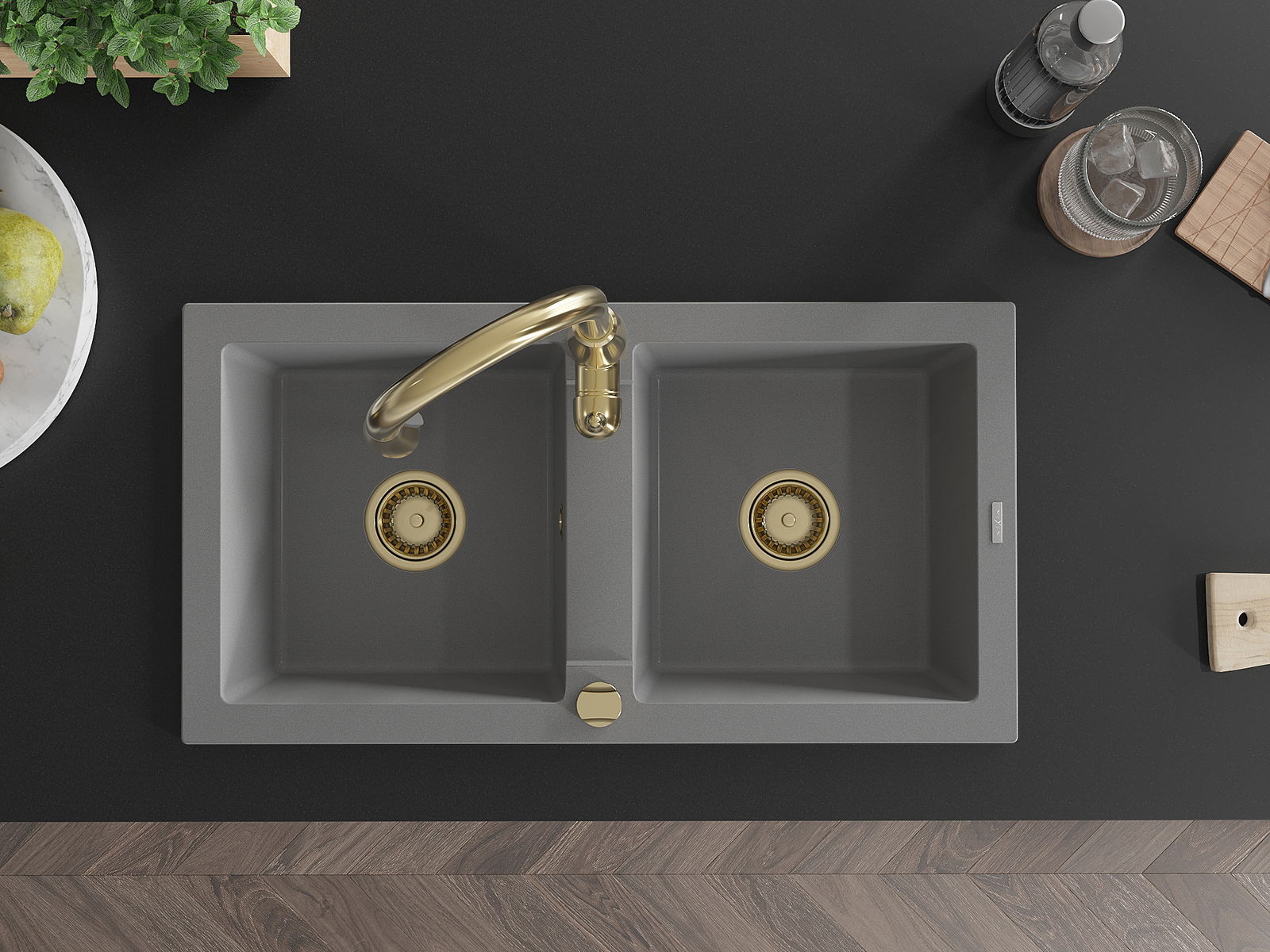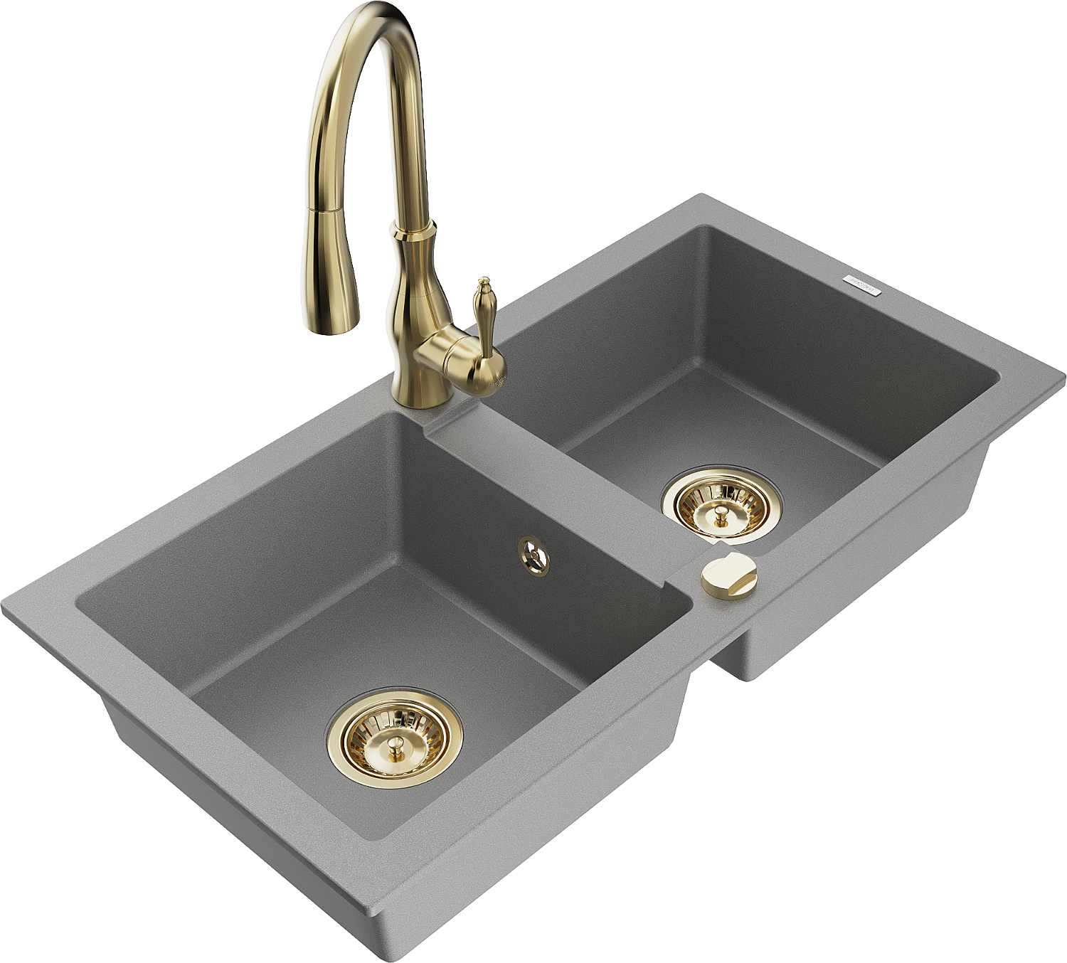 Mexen Mario kéttálcás gránit mosogató konyhai csappal Savita, szürke - 6504-71-672601-50