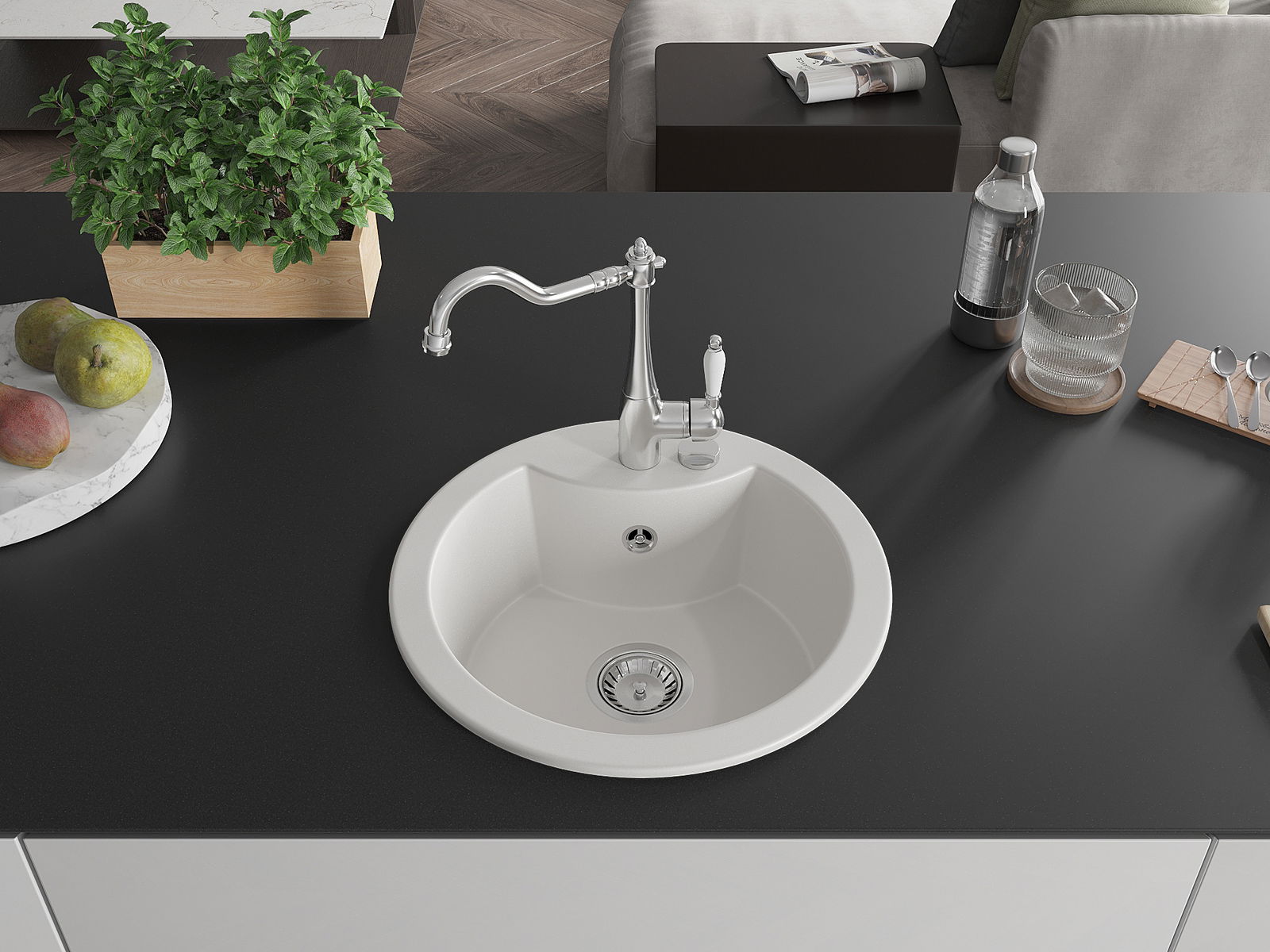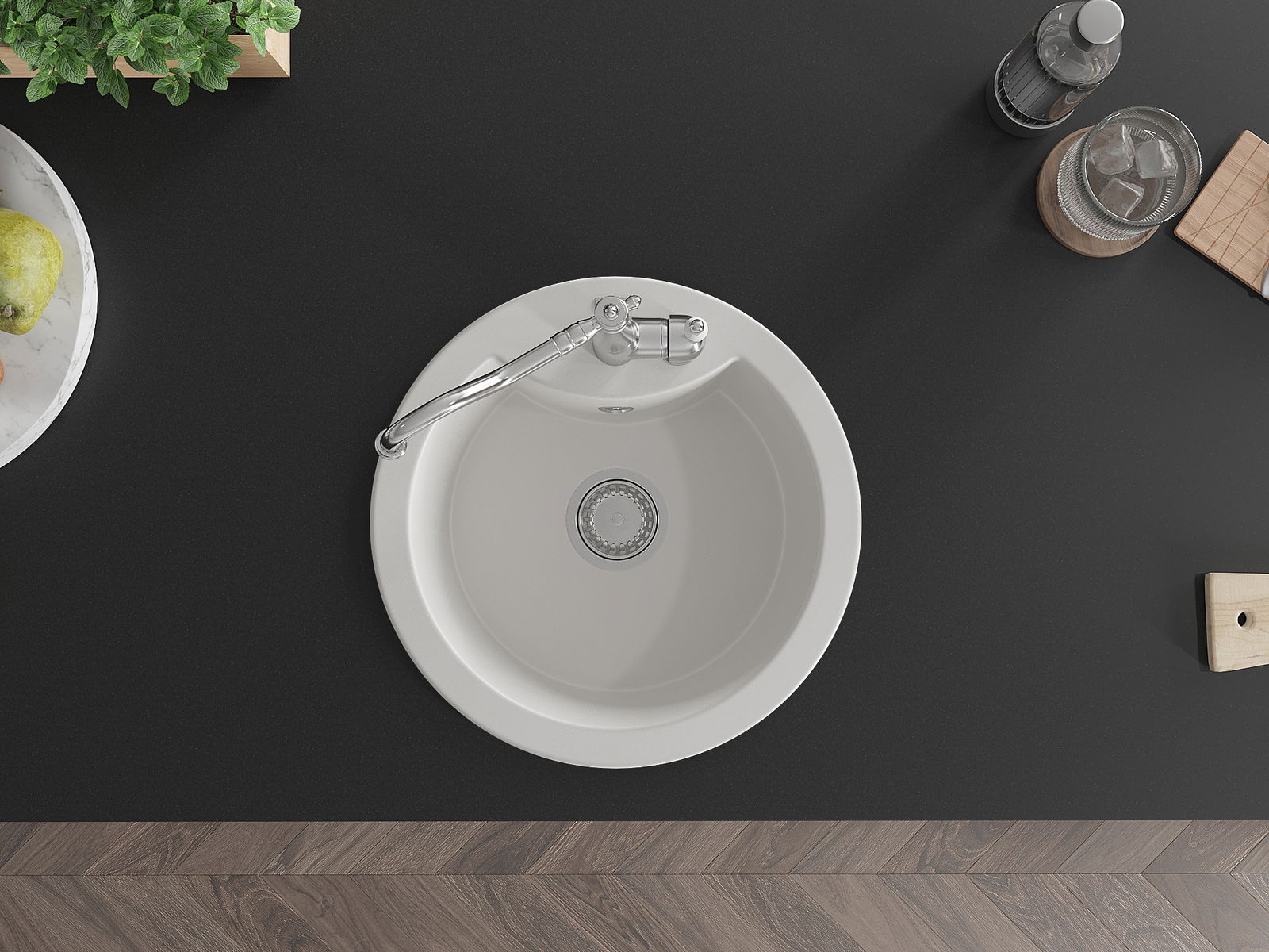 A mosogató magas minőségű gránitból készült. Elegáns, de mindenekelőtt praktikus kiegészítője minden konyhának, függetlenül annak stílusától. A gránit magas minősége és tartóssága hosszú távú használatot biztosít.
