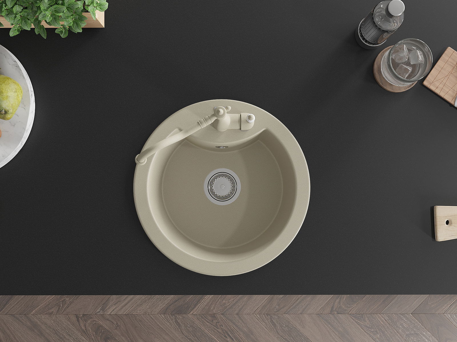 A mosogató kiváló minőségű gránitból készül. Ez egy elegáns és mindenekelőtt minden konyhához praktikus kiegészítés, stílusától függetlenül. A kiváló minőségű és a gránit tartósság biztosítja a sok éves használatát.