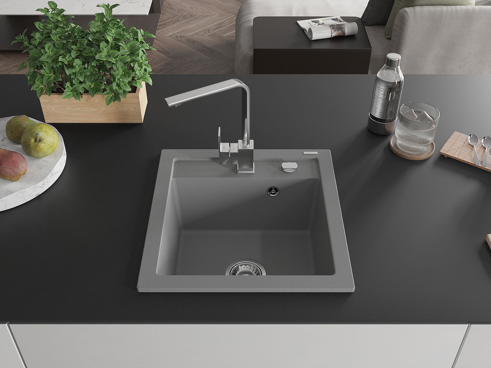 A mosogató kiváló minőségű gránitból készül. Ez egy elegáns és mindenekelőtt minden konyhához praktikus kiegészítés, stílusától függetlenül. A kiváló minőségű és a gránit tartósság biztosítja a sok éves használatát.