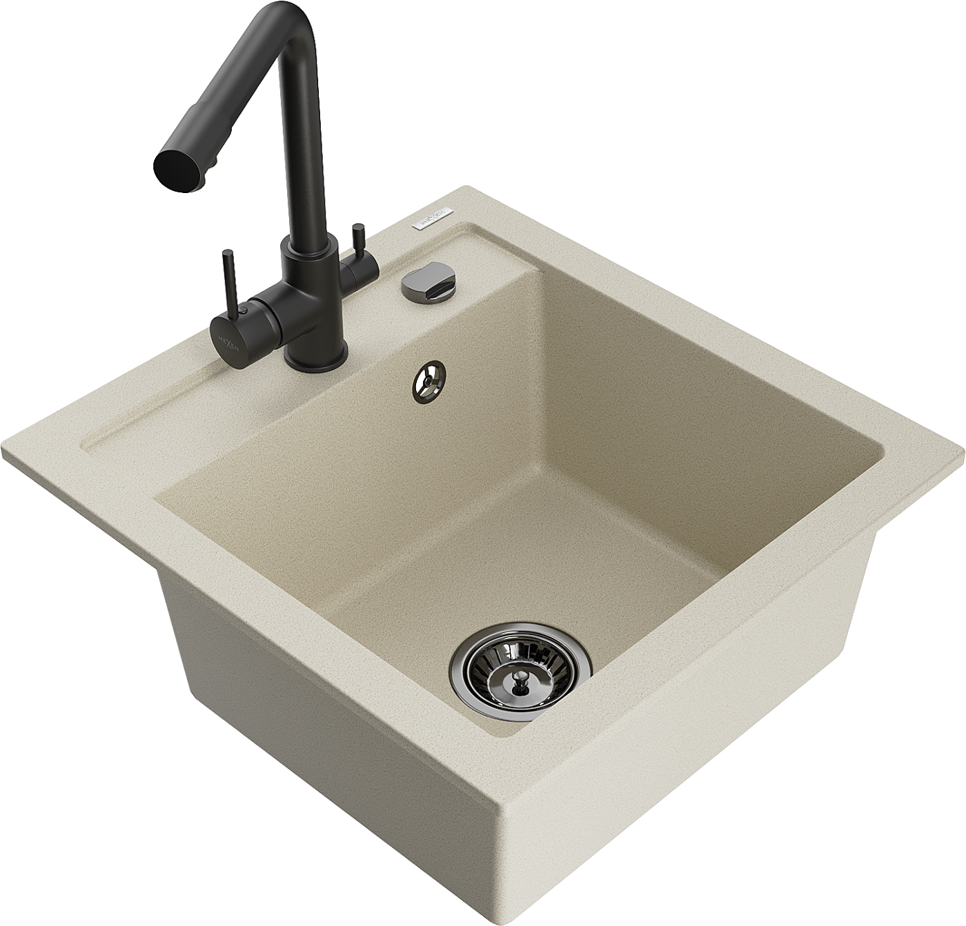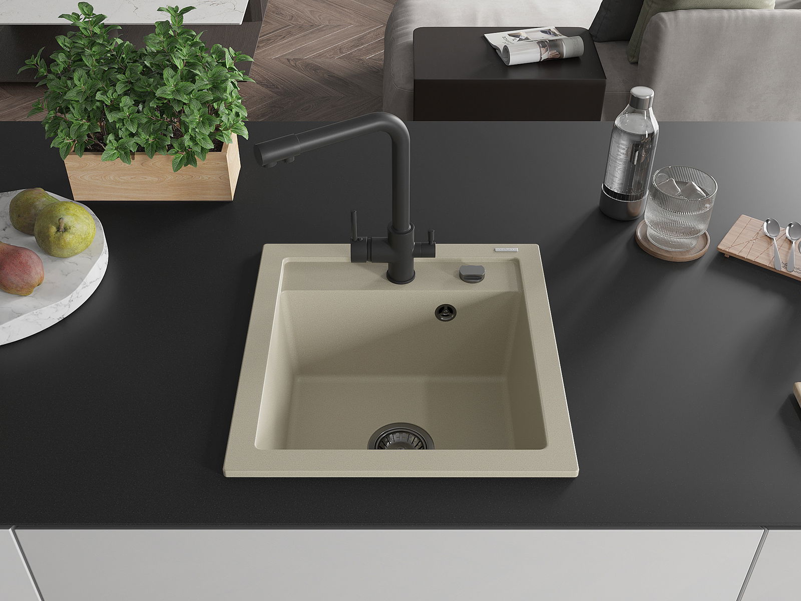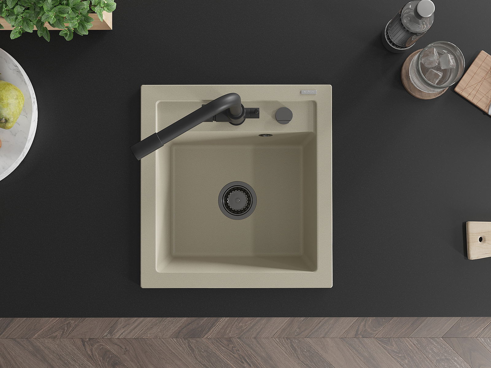 A mosogató kiváló minőségű gránitból készül. Ez egy elegáns és mindenekelőtt minden konyhához praktikus kiegészítés, stílusától függetlenül. A kiváló minőségű és a gránit tartósság biztosítja a sok éves használatát.