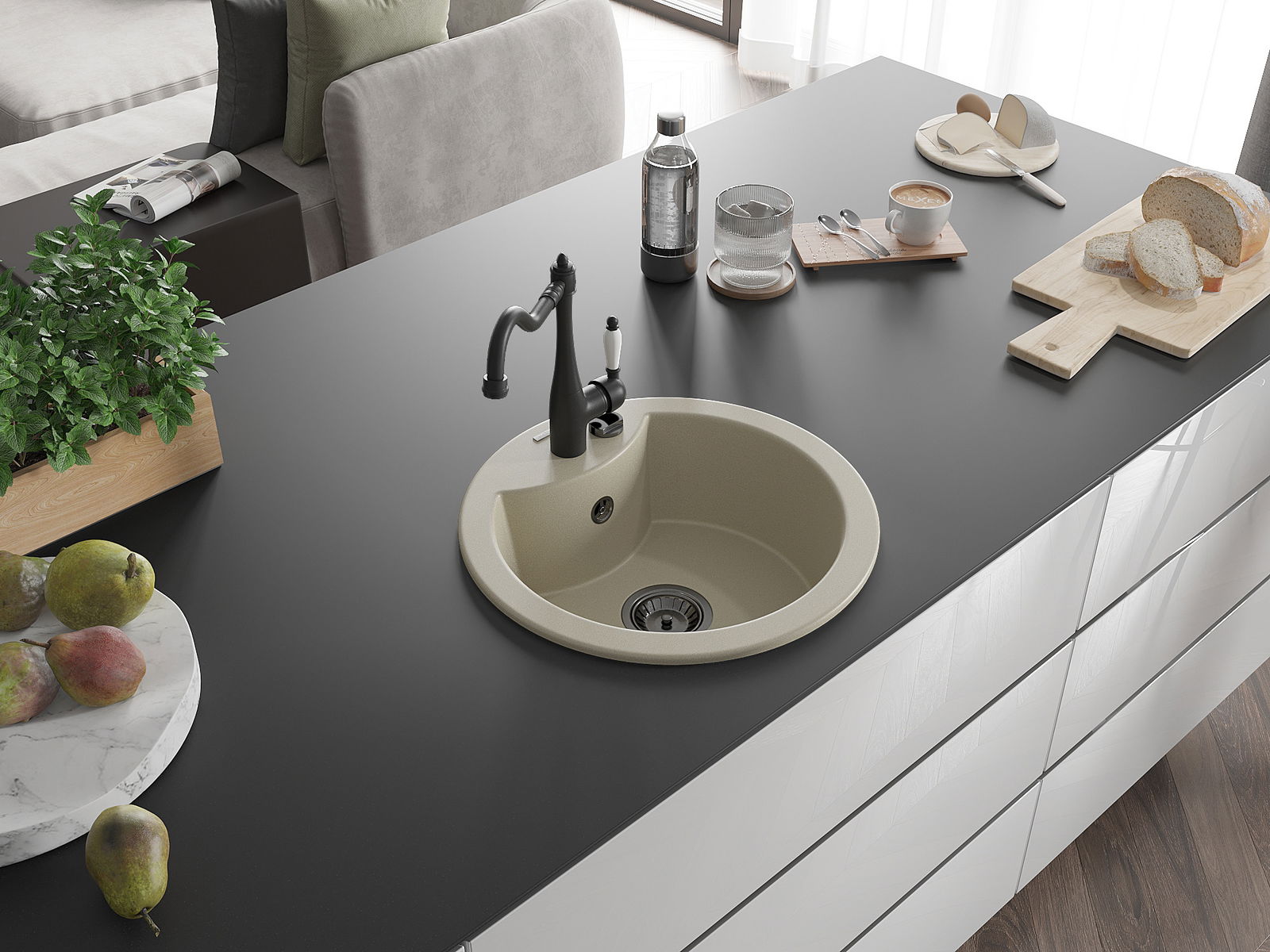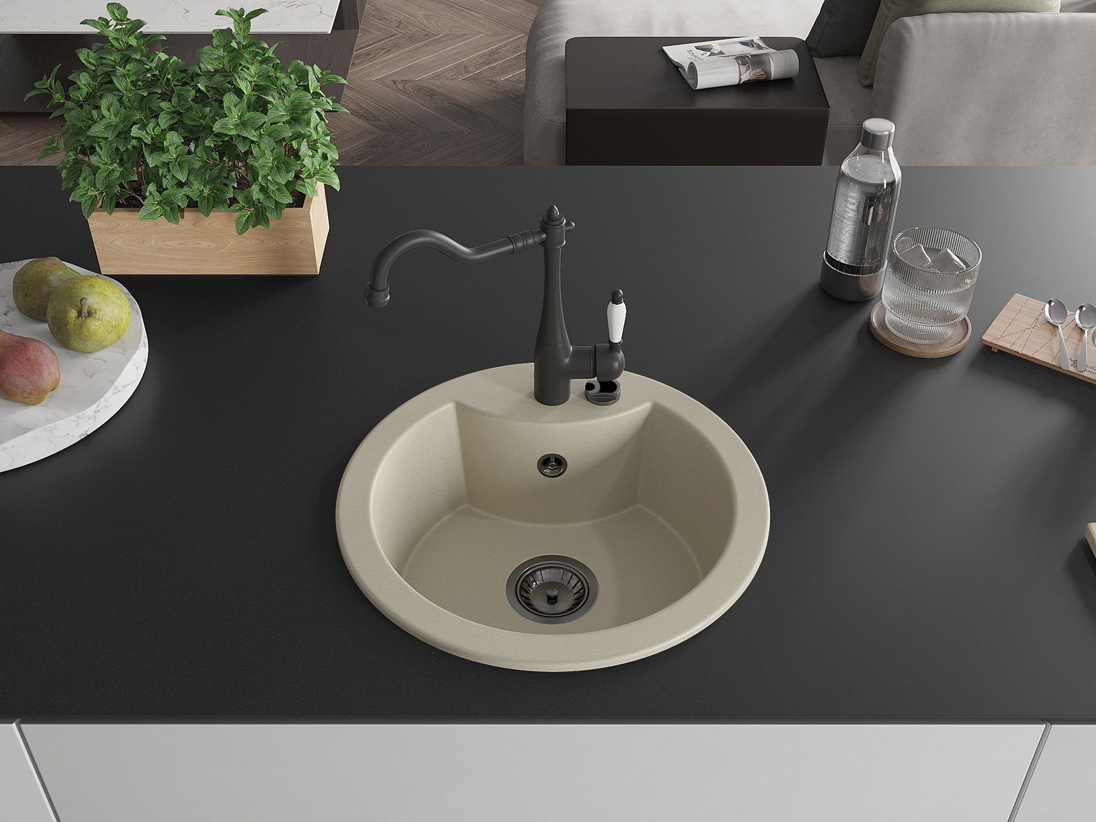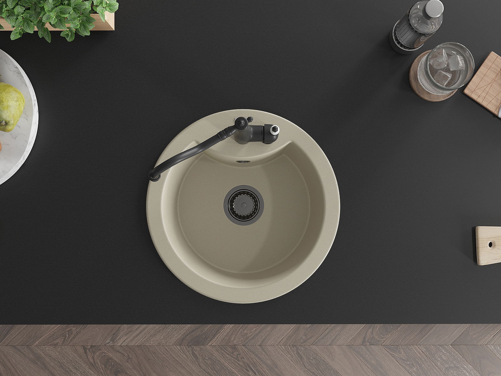 A mosogató magas minőségű gránitból készült. Elegáns, de mindenekelőtt praktikus kiegészítője minden konyhának, függetlenül annak stílusától. A gránit magas minősége és tartóssága hosszú távú használatot biztosít.