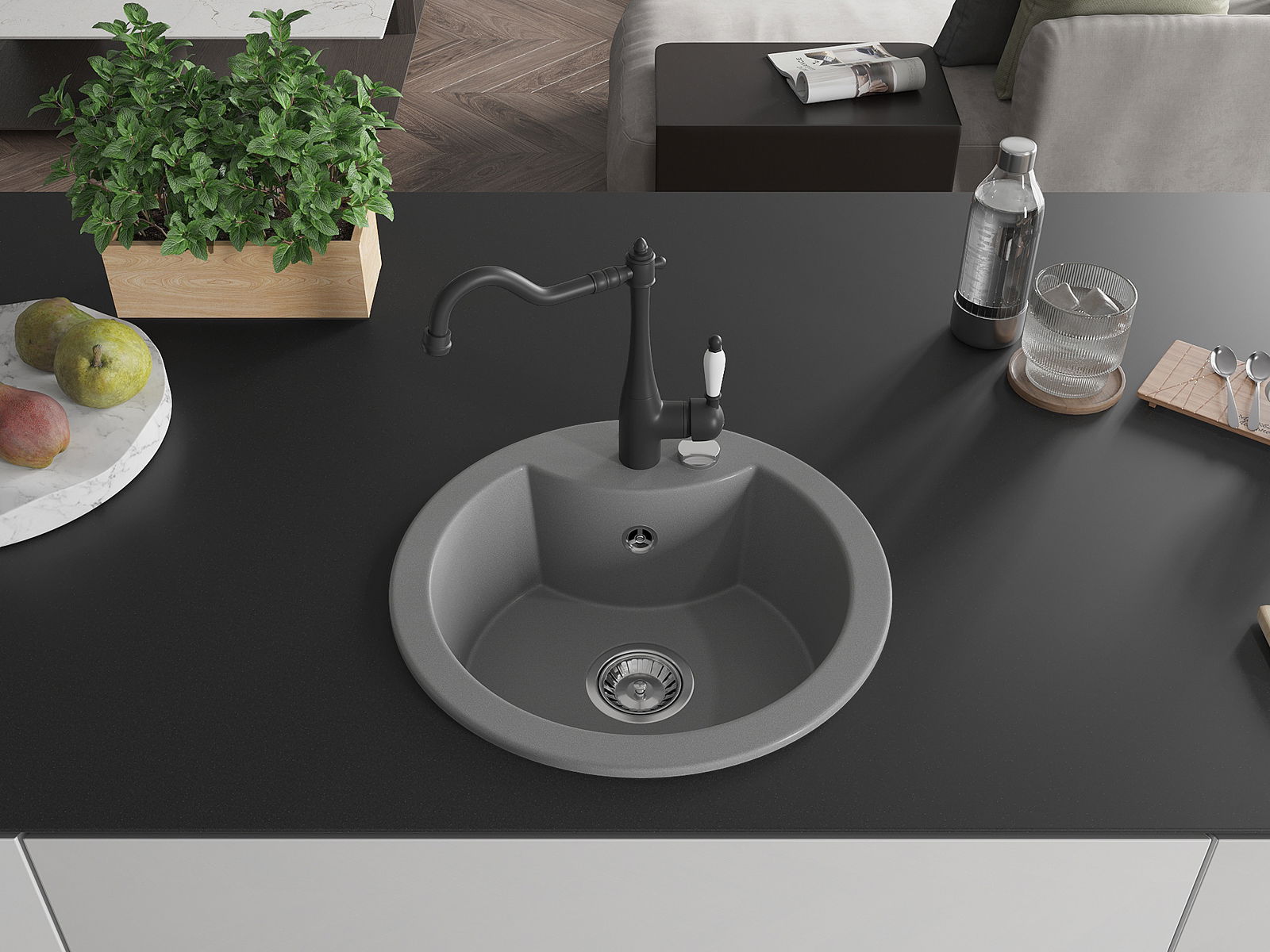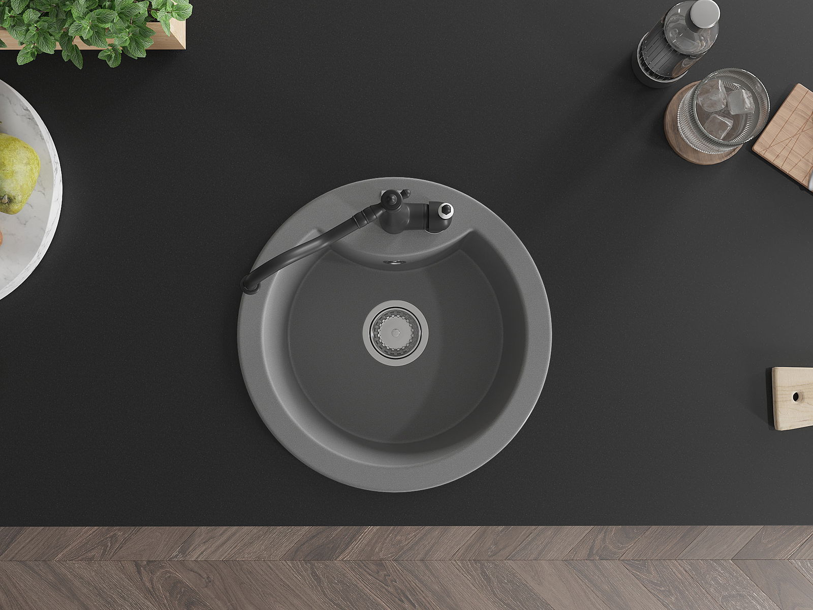 A mosogató magas minőségű gránitból készült. Elegáns, de mindenekelőtt praktikus kiegészítője minden konyhának, függetlenül annak stílusától. A gránit magas minősége és tartóssága hosszú távú használatot biztosít.
