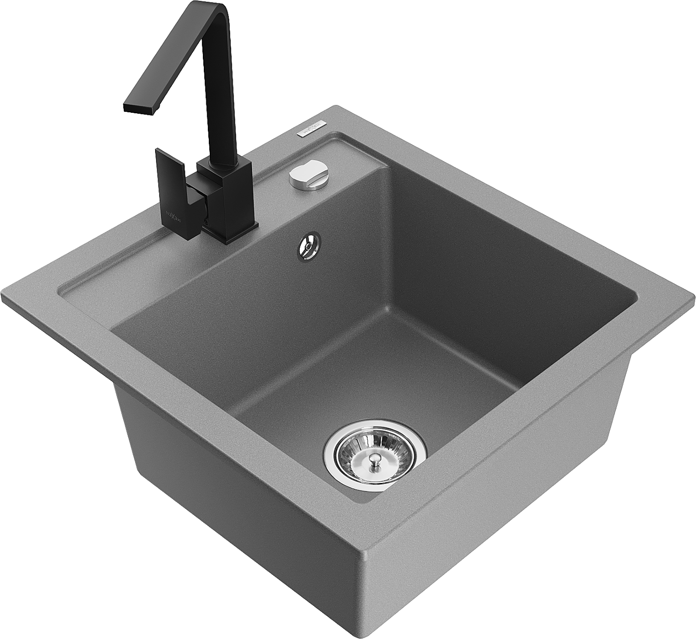 Mexen Vito egymedencés gránit mosogató Rita konyhai csapteleppel, szürke - 6503-71-670300-70