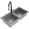 Mexen Mario 2 rekeszes gránit mosogató Savita konyhai csappal, fekete/ezüst metál - 6504-73-672601-70