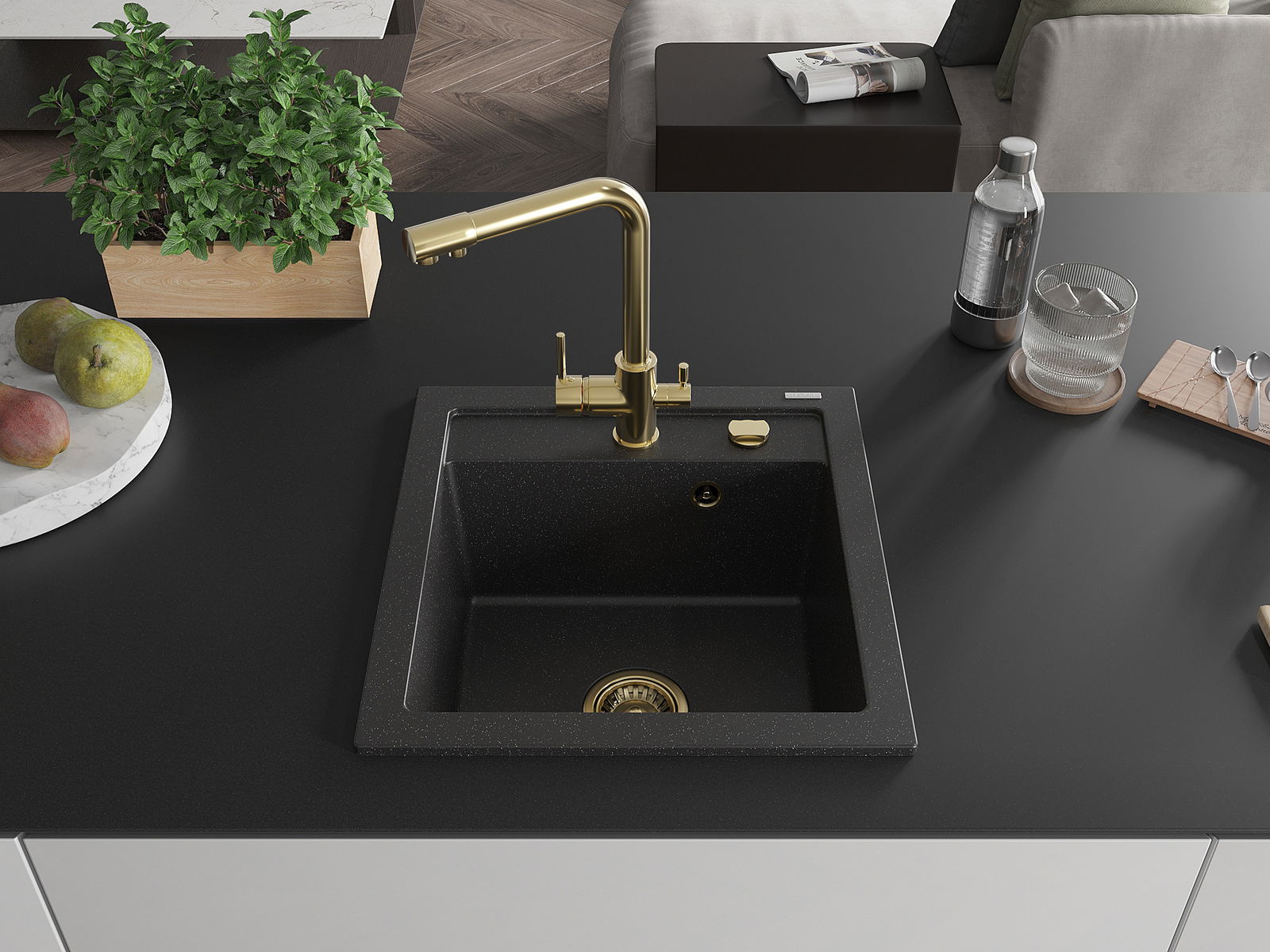A mosogató kiváló minőségű gránitból készül. Ez egy elegáns és mindenekelőtt minden konyhához praktikus kiegészítés, stílusától függetlenül. A kiváló minőségű és a gránit tartósság biztosítja a sok éves használatát.