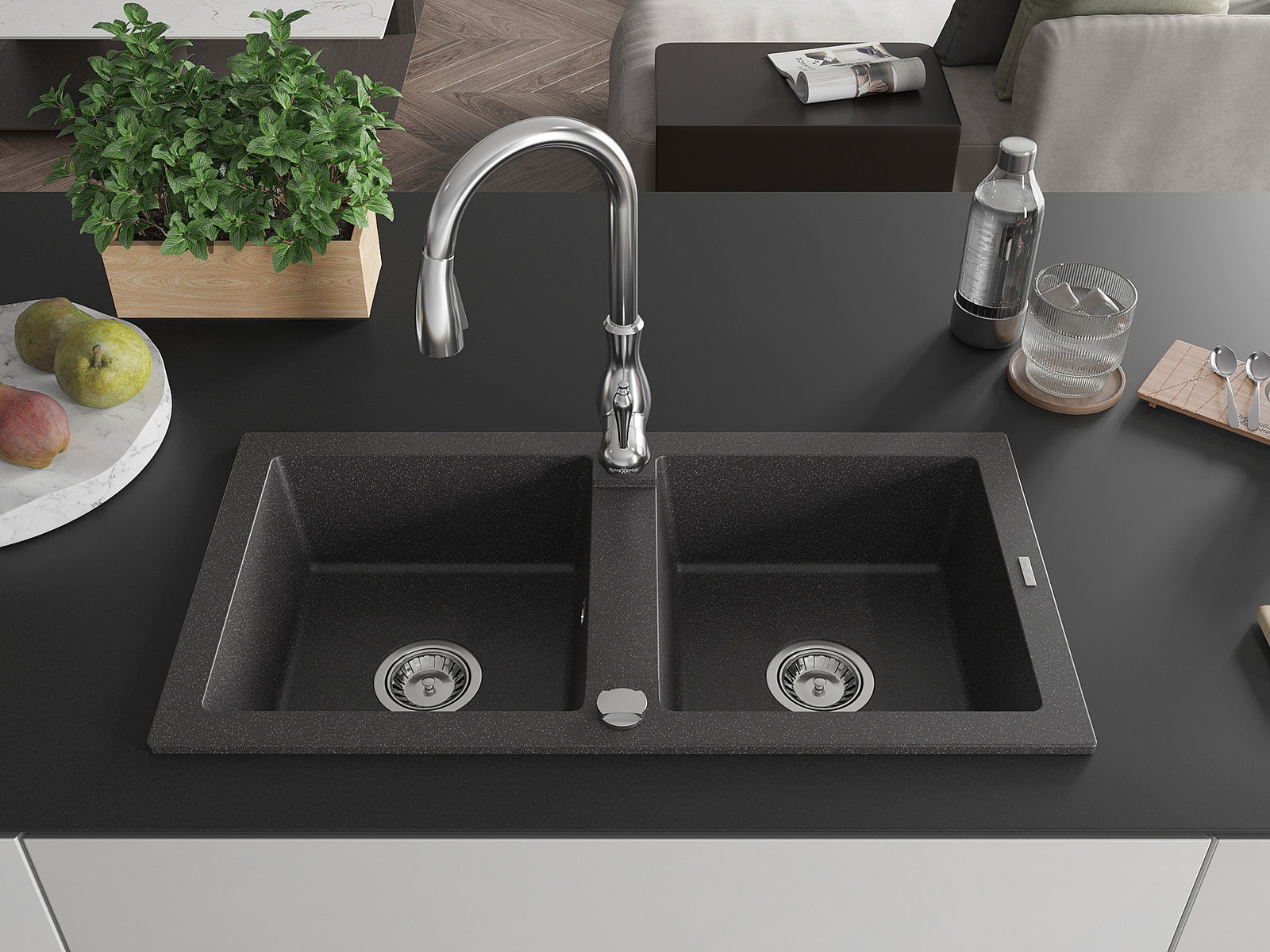A mosogató kiváló minőségű gránitból készül. Ez egy elegáns és mindenekelőtt minden konyhához praktikus kiegészítés, stílusától függetlenül. A kiváló minőségű és a gránit tartósság biztosítja a sok éves használatát.