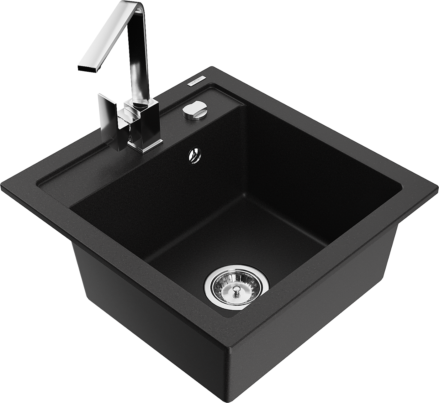 Mexen Vito 1-medencés gránit mosogató Rita konyhai csapteleppel, fekete - 6503-77-670300-00
