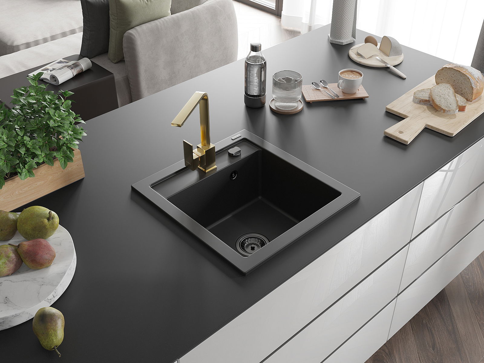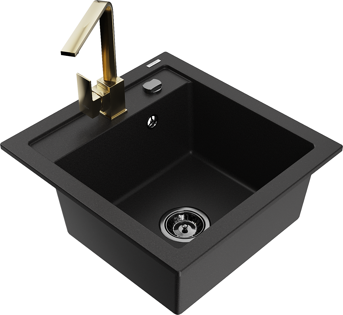 Mexen Vito 1-medencés gránit mosogató Rita konyhai csapteleppel, fekete - 6503-77-670300-50-B