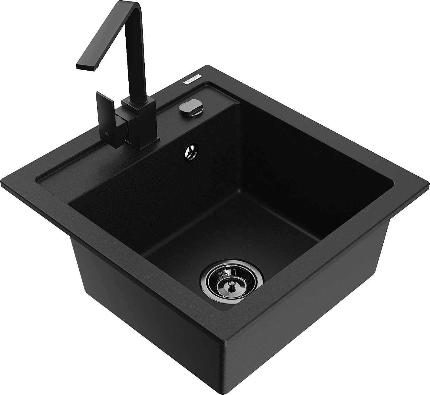Mexen Vito 1-medencés gránit mosogató Rita konyhai csapteleppel, fekete - 6503-77-670300-70-B