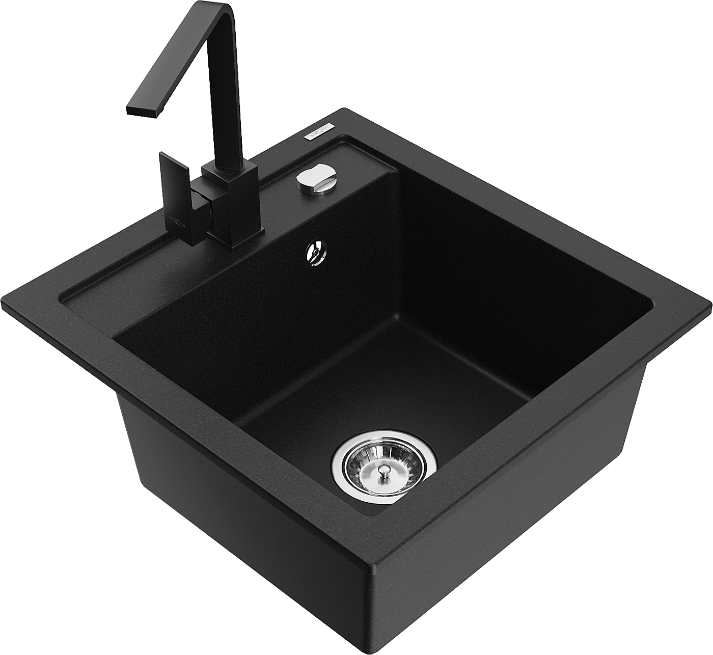 Mexen Vito egykamrás gránit mosogató Rita konyhai csapteleppel, fekete - 6503-77-670300-70