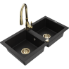 Mexen Mario 2-kamrás gránit mosogató Savita konyhai csapteleppel, fekete - 6504-77-672601-70