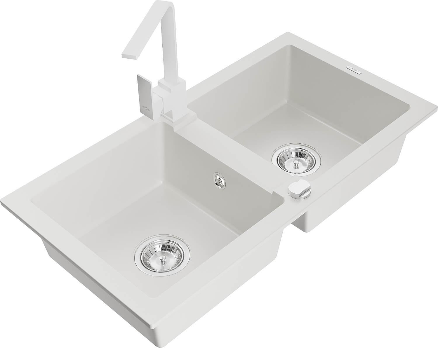 Mexen Mario 2 rekeszes gránit mosogató Rita konyhai csappal, fehér - 6504-20-670300-20