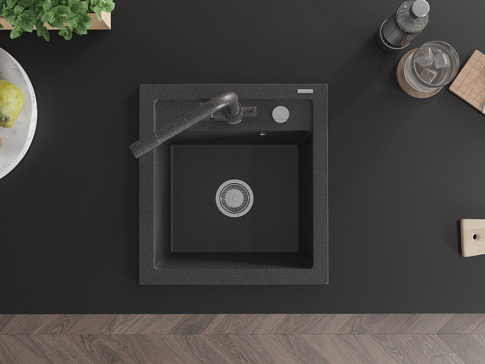 A mosogató kiváló minőségű gránitból készül. Ez egy elegáns és mindenekelőtt minden konyhához praktikus kiegészítés, stílusától függetlenül. A kiváló minőségű és a gránit tartósság biztosítja a sok éves használatát.