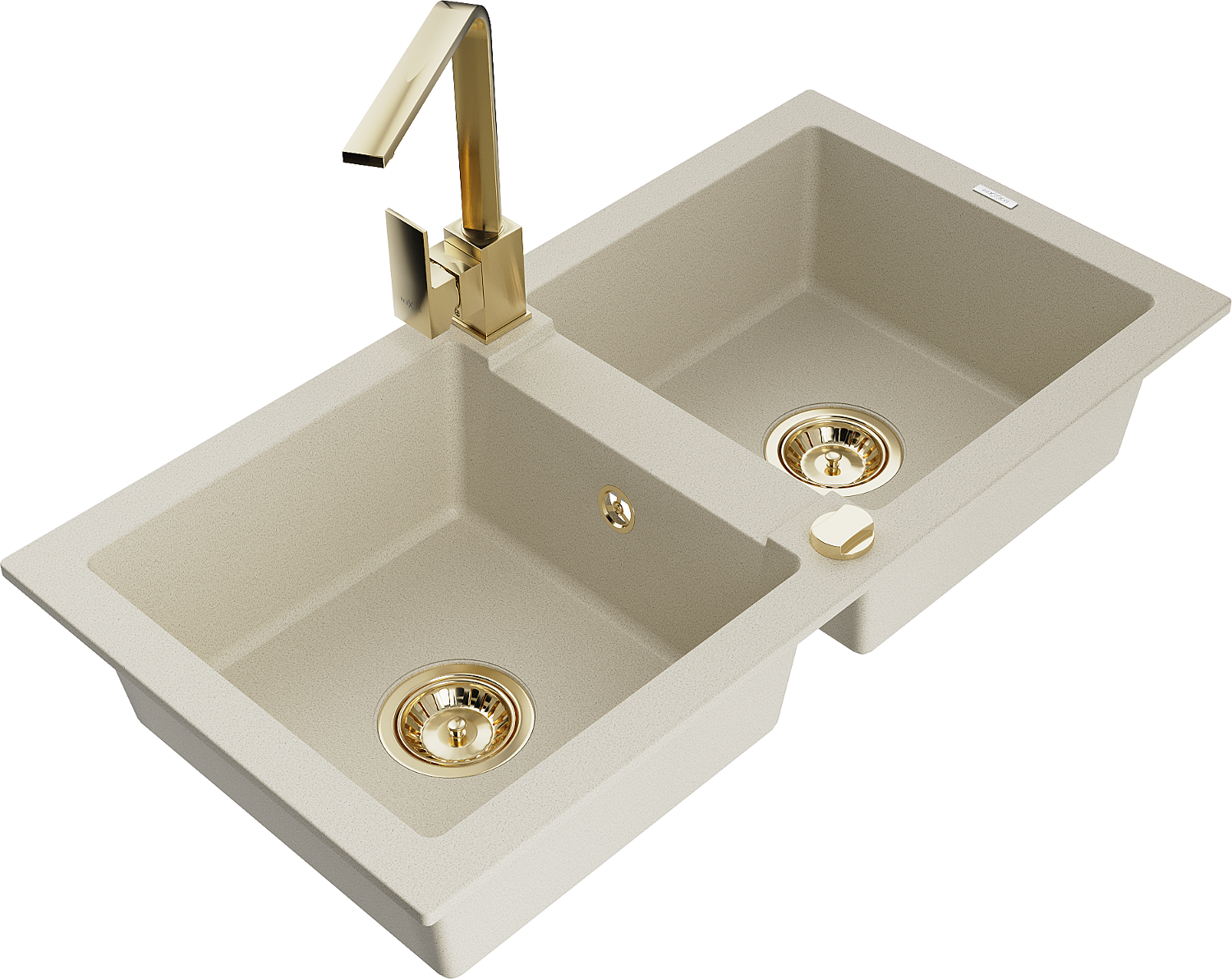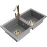 Mexen Mario gránit mosogató 2 rekeszes Rita konyhai csapteleppel, bézs - 6504-69-670300-50