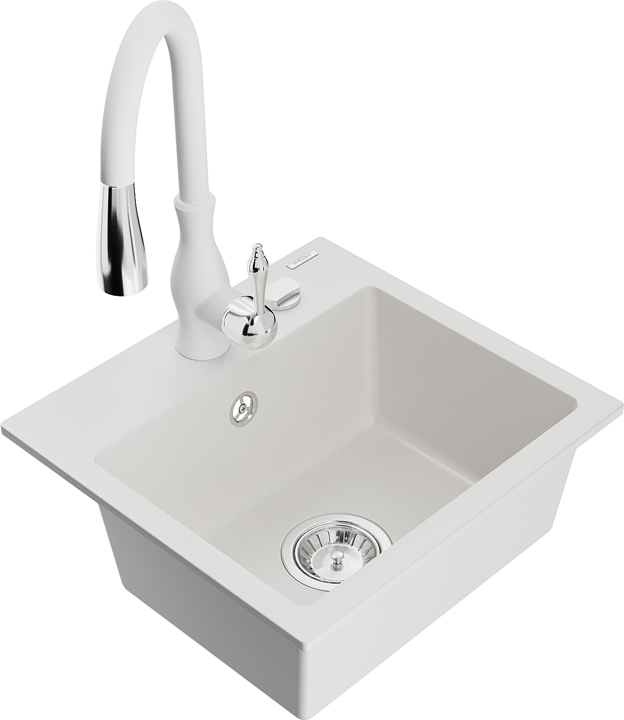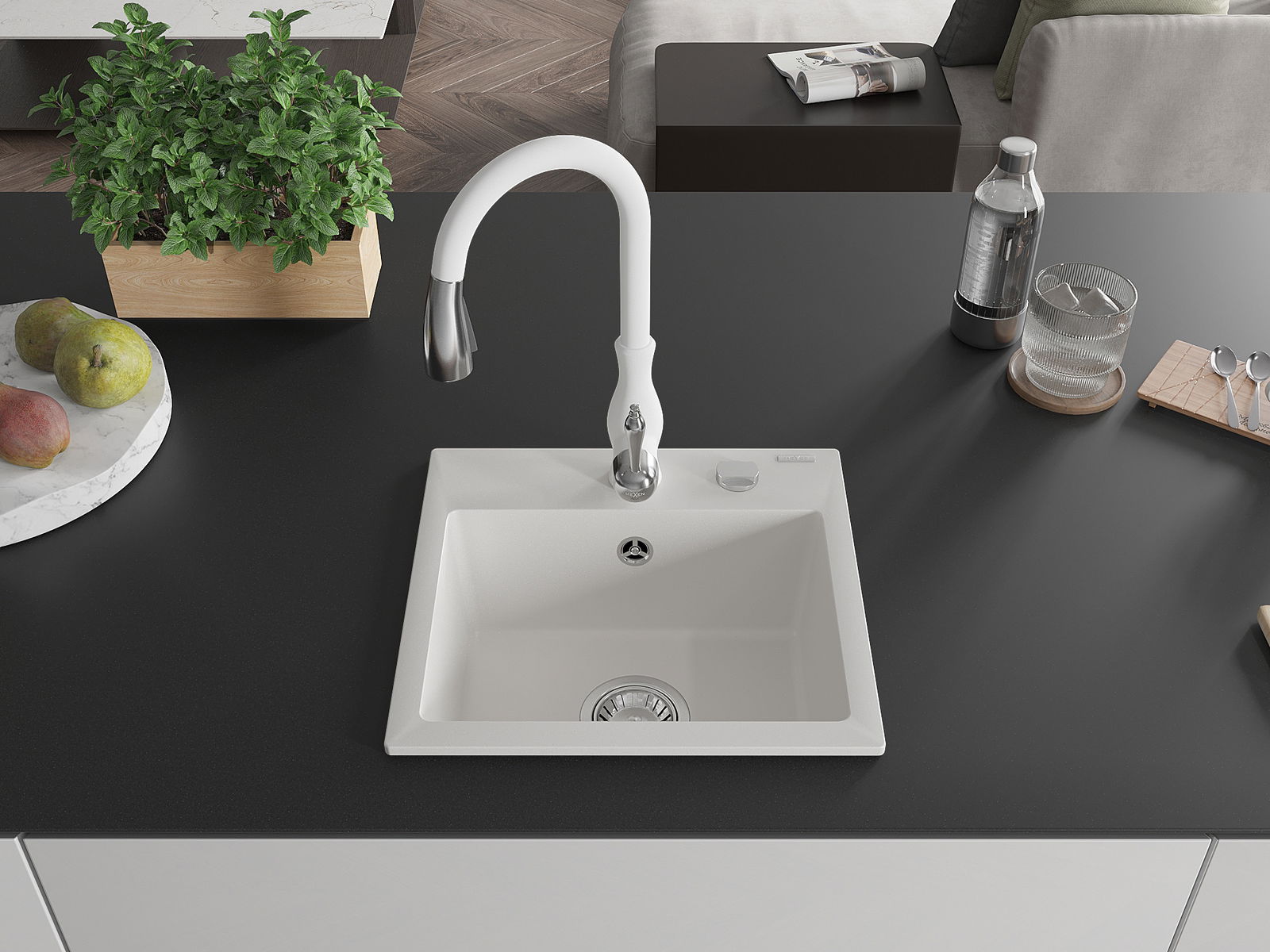 Mexen Milo gránit mosogató 1-medencés konyhai csapteleppel, Savita, fehér - 6505-20-672601-20