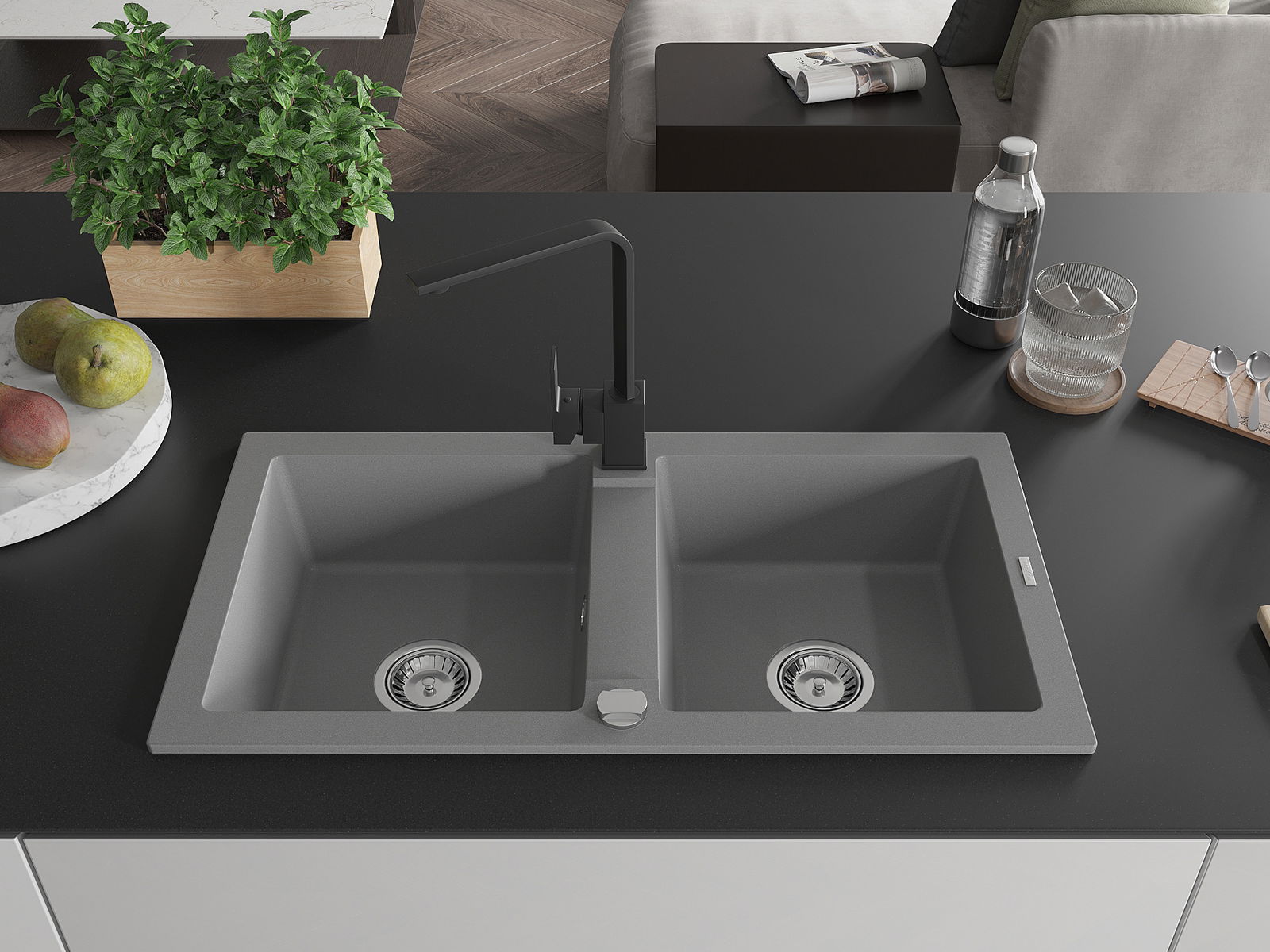 A mosogató kiváló minőségű gránitból készül. Ez egy elegáns és mindenekelőtt minden konyhához praktikus kiegészítés, stílusától függetlenül. A kiváló minőségű és a gránit tartósság biztosítja a sok éves használatát.