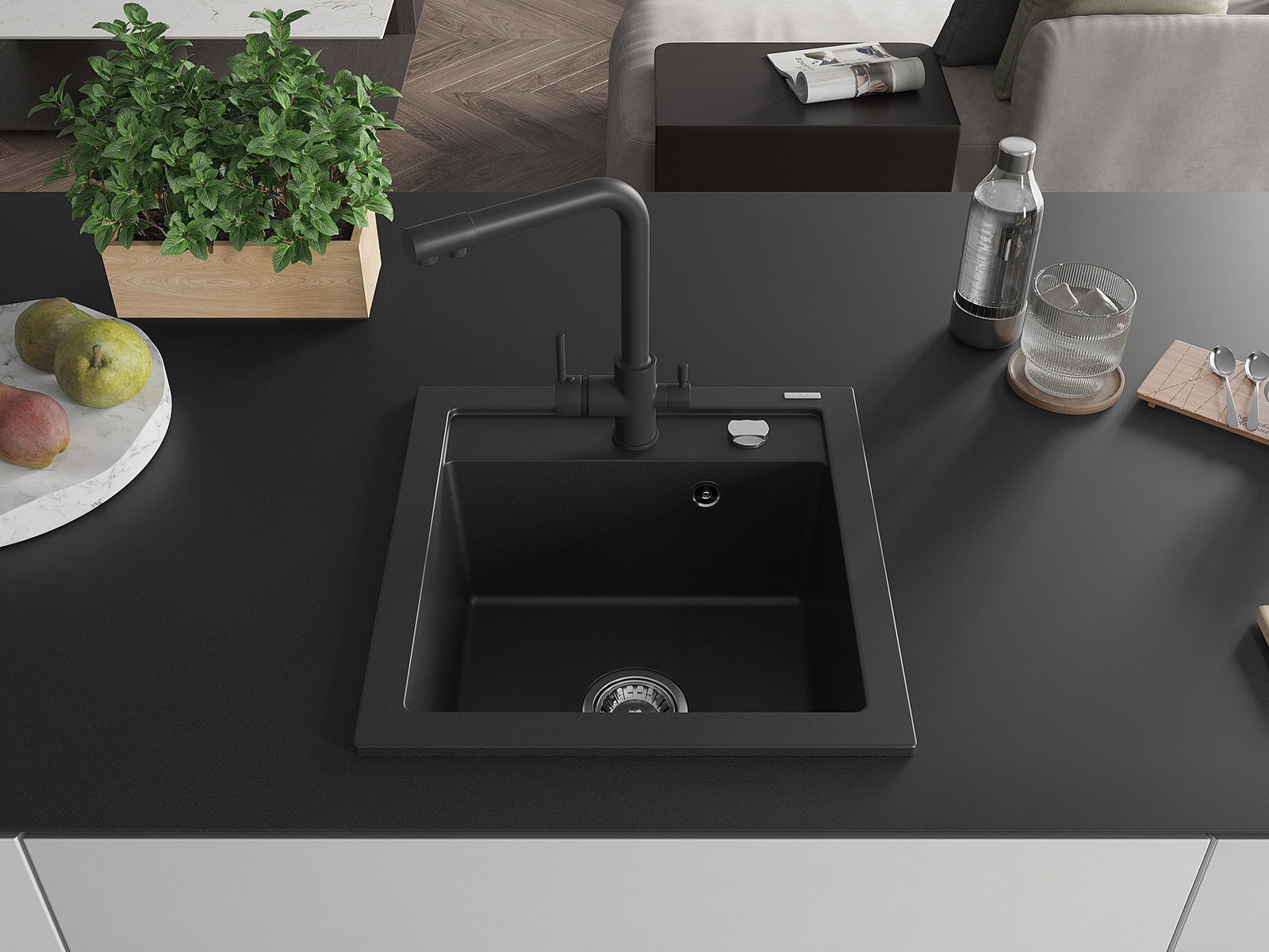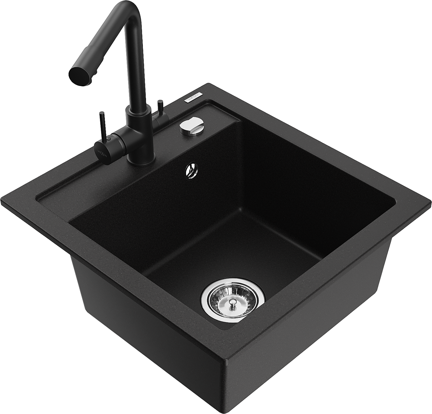 Mexen Vito 1-medencés gránit mosogató Duero konyhai csapteleppel, fekete - 6503-77-671600-70