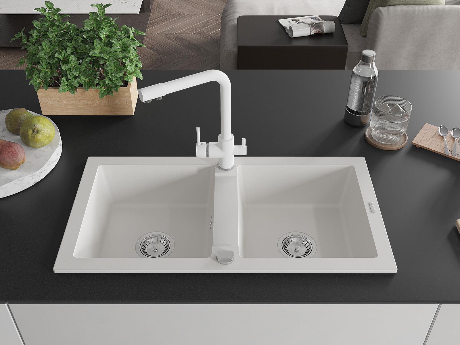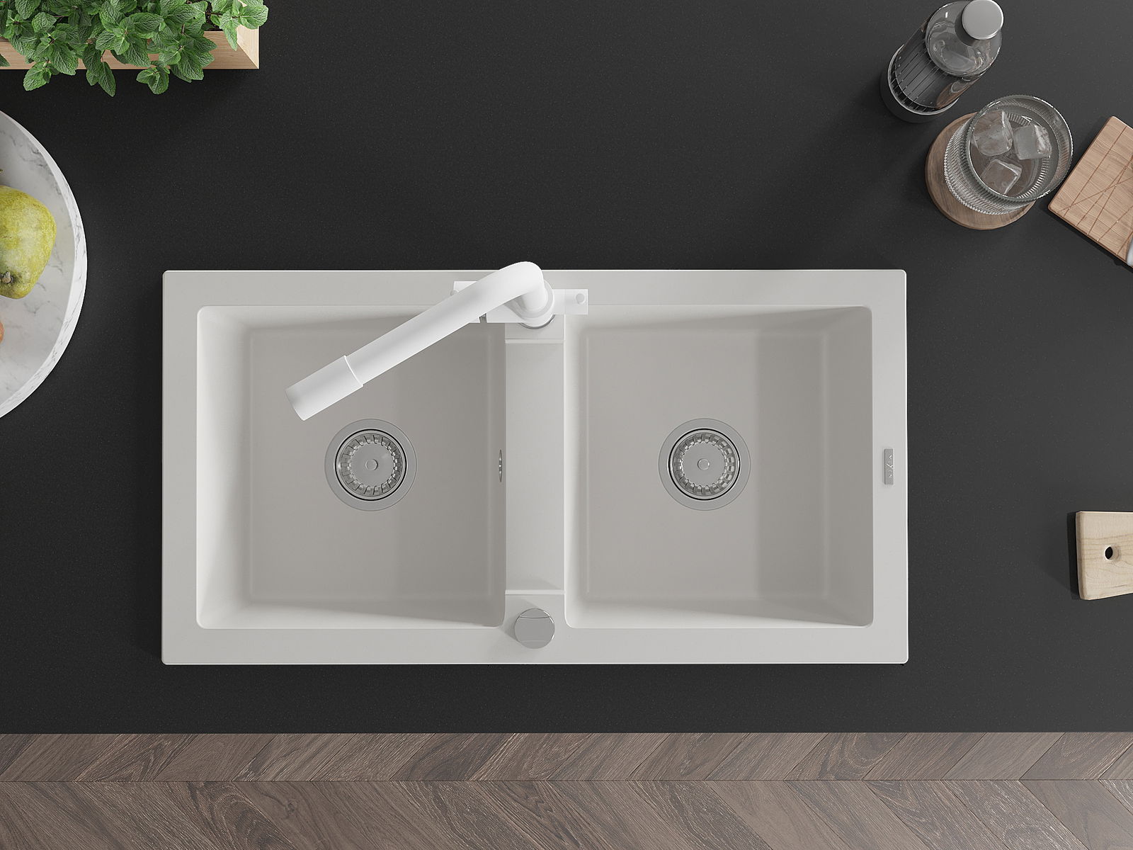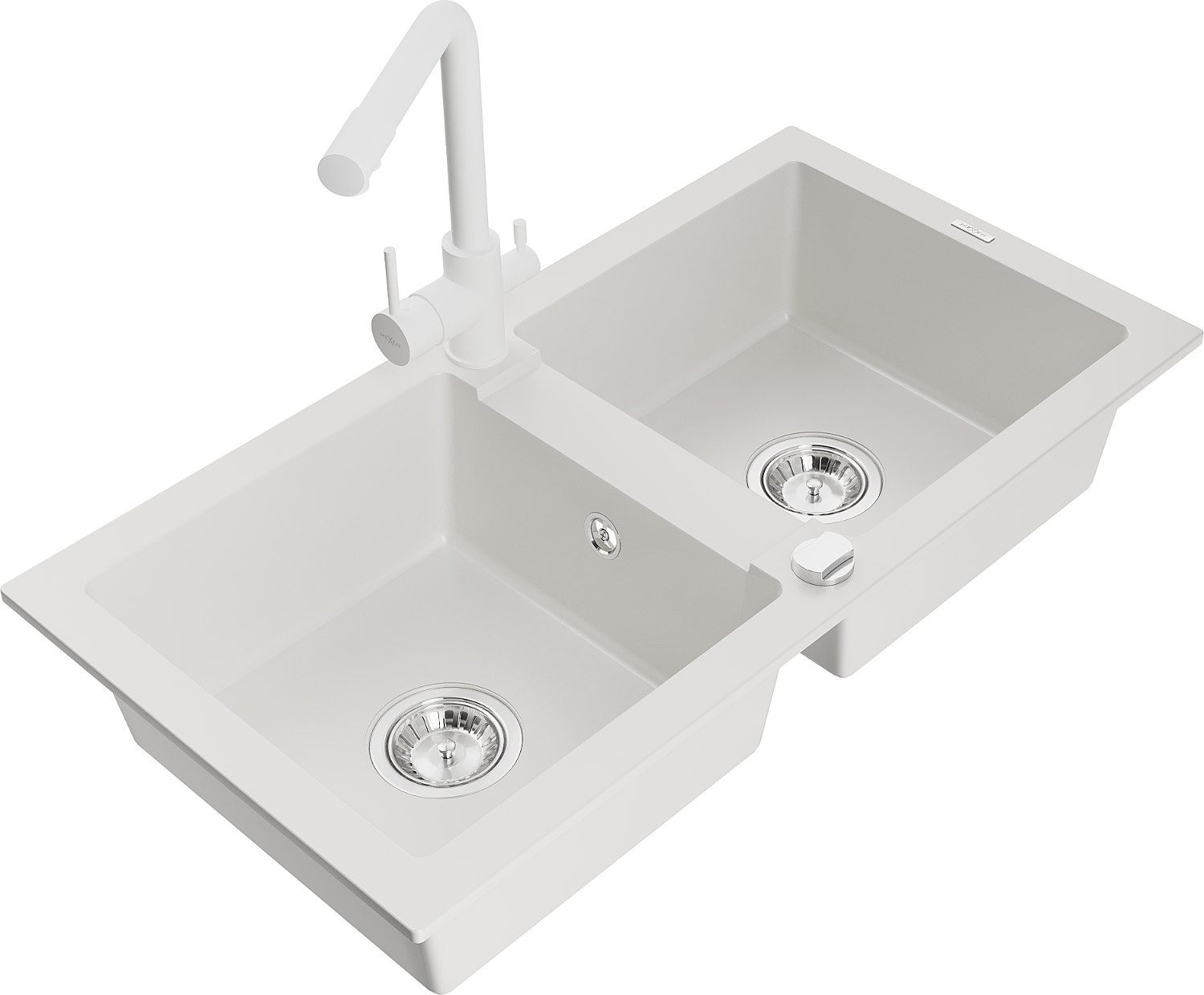Mexen Mario 2 rekeszes gránit mosogató Duero konyhai csappal, fehér - 6504-20-671600-20