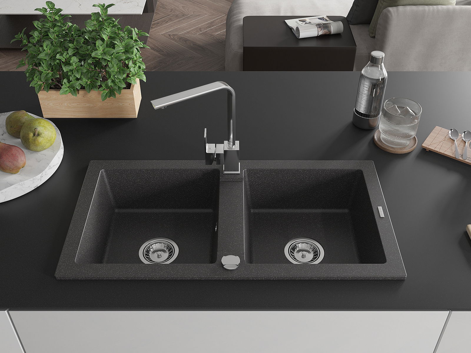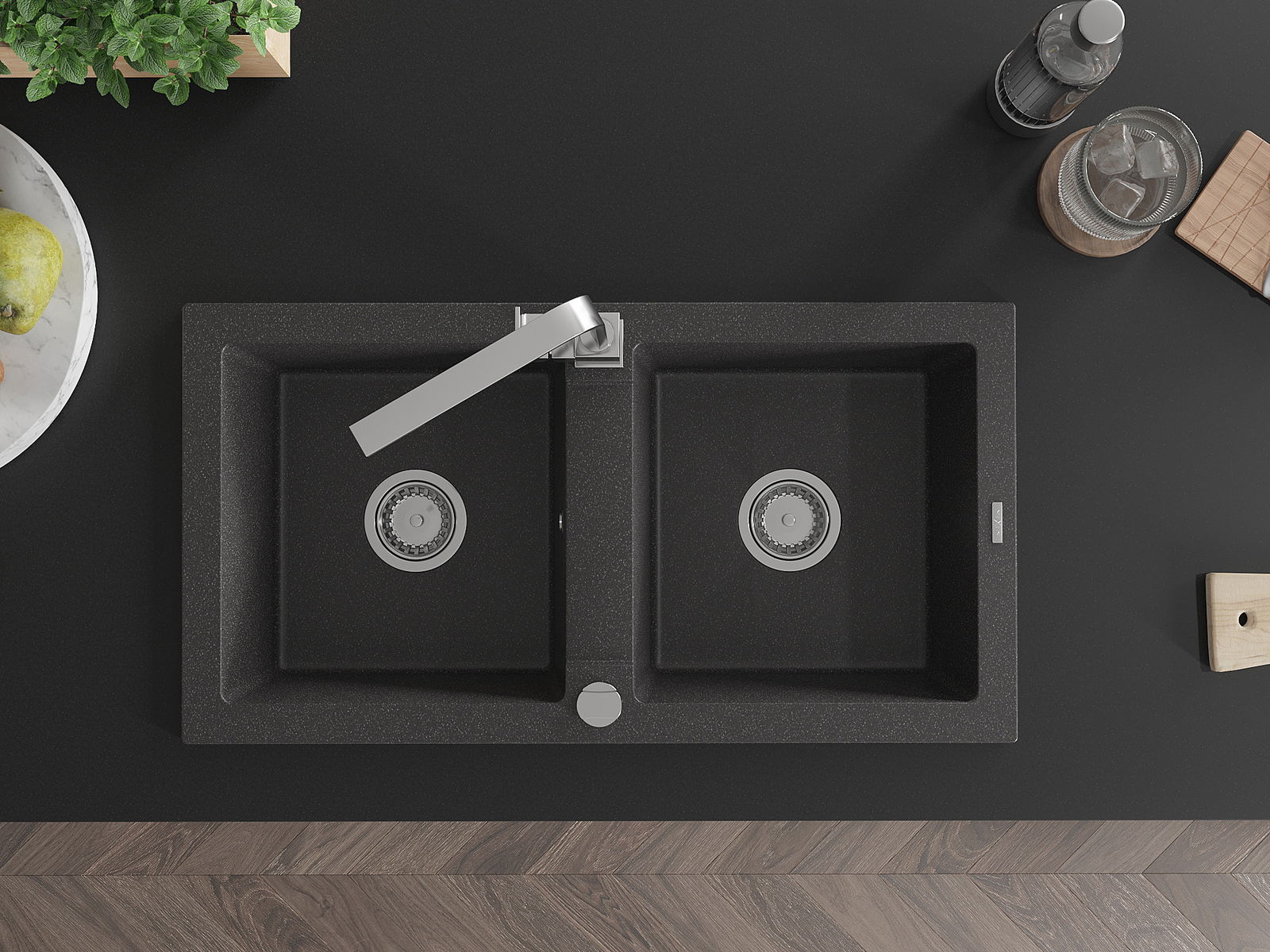 A mosogató kiváló minőségű gránitból készül. Ez egy elegáns és mindenekelőtt minden konyhához praktikus kiegészítés, stílusától függetlenül. A kiváló minőségű és a gránit tartósság biztosítja a sok éves használatát.