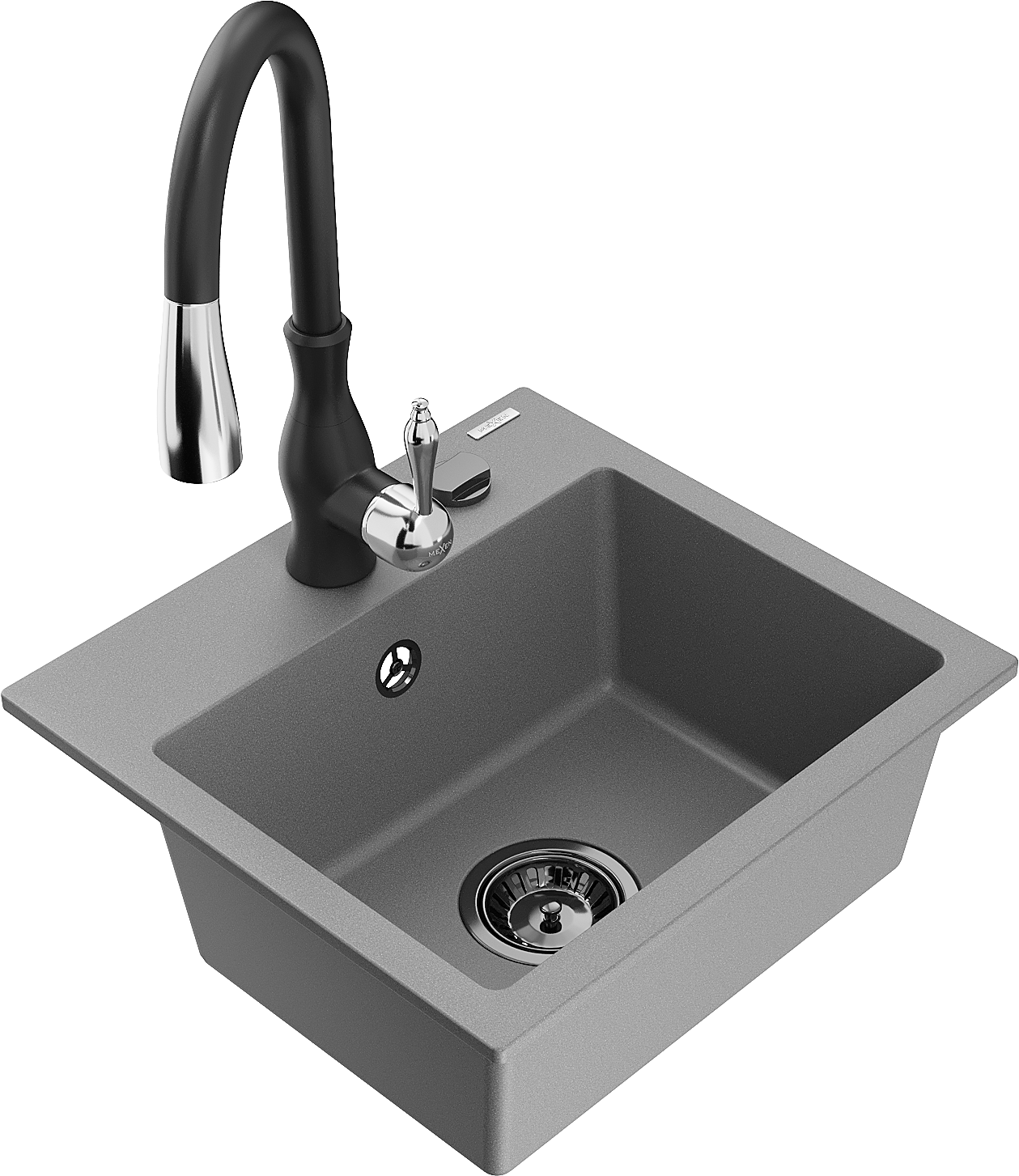 Mexen Milo egymedencés gránit mosogató Savita konyhai csapteleppel, szürke - 6505-71-672601-70-B
