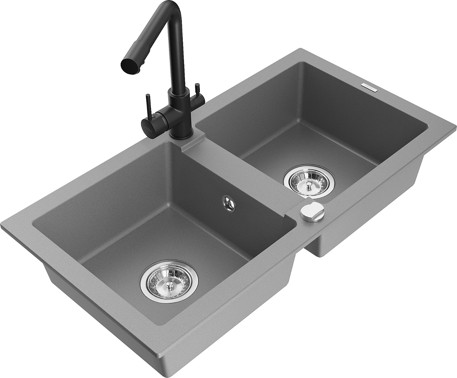 Mexen Mario 2 kamrás gránit mosogató kagyló Duero konyhai csappal, szürke - 6504-71-671600-70