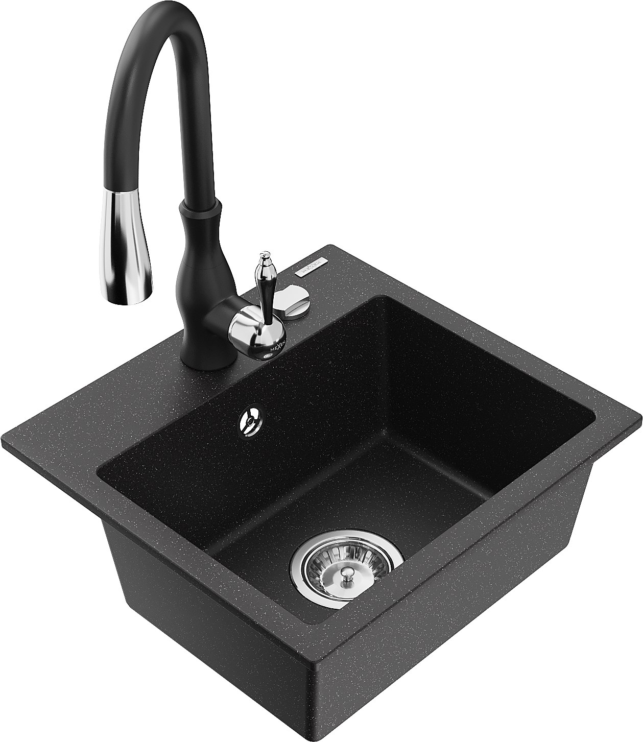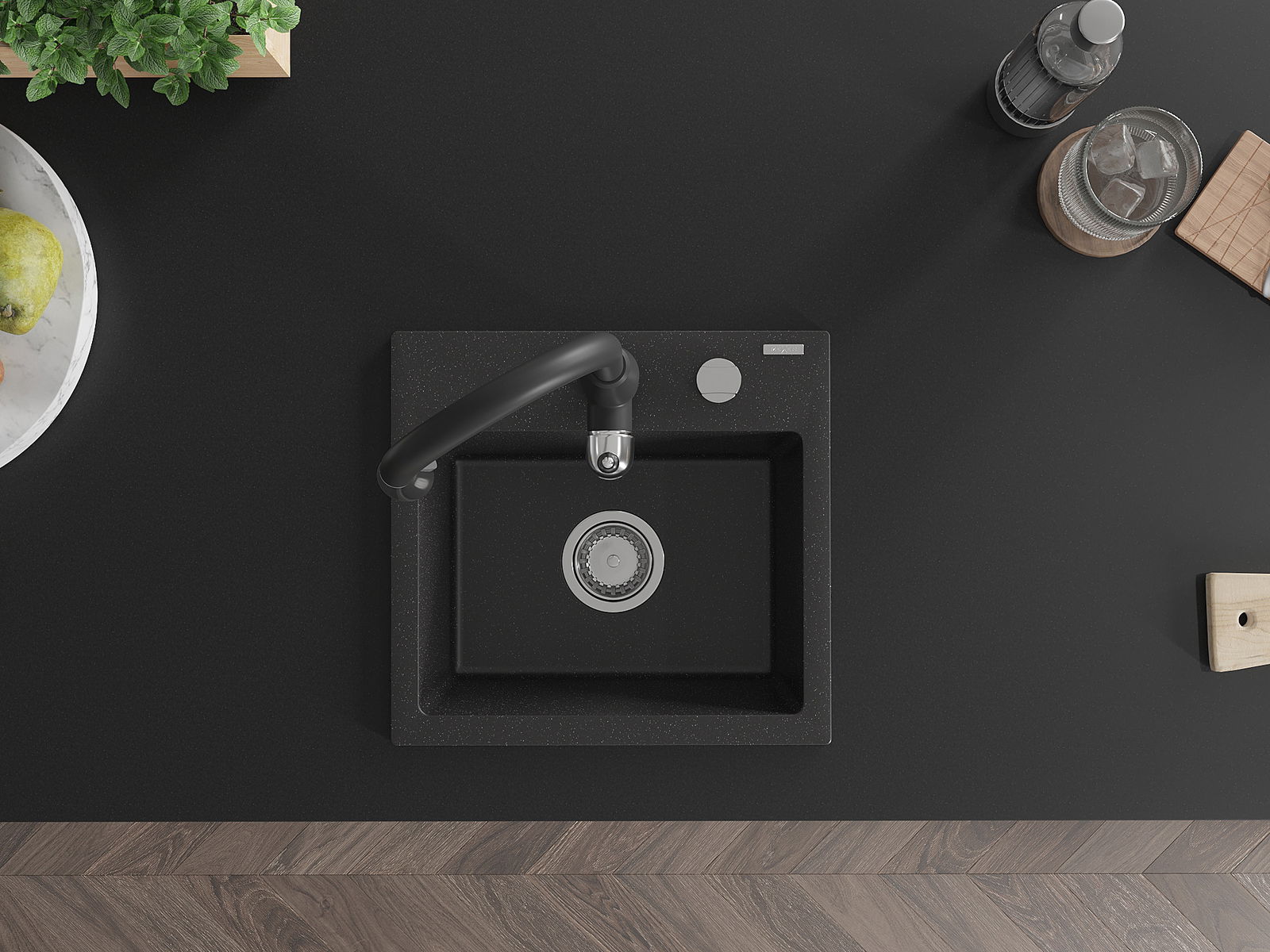 Mexen Milo egymedencés gránit mosogató konyhai csapteleppel Savita, fekete/ezüst metál - 6505-73-672601-70