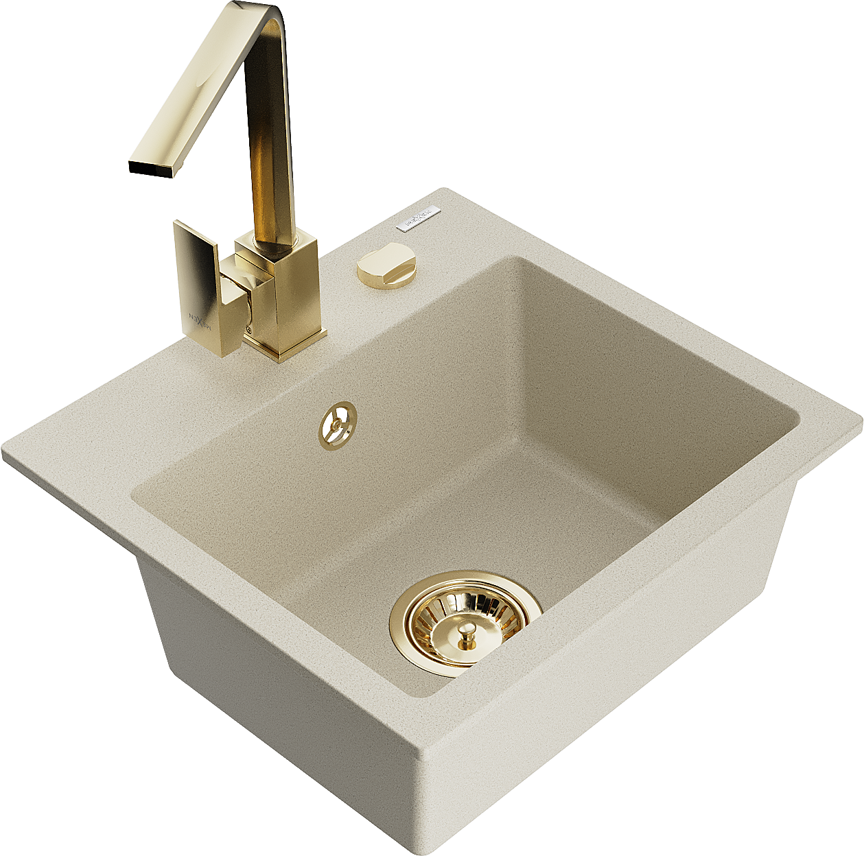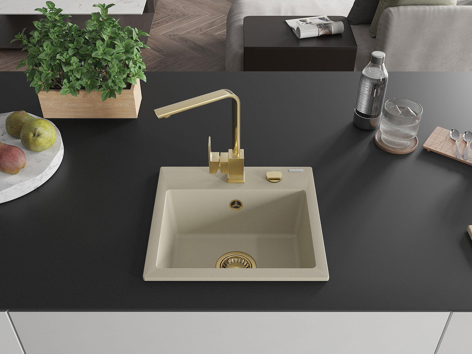 Mexen Milo 1-medencés gránit mosogató Rita konyhai csapteleppel, bézs - 6505-69-670300-50