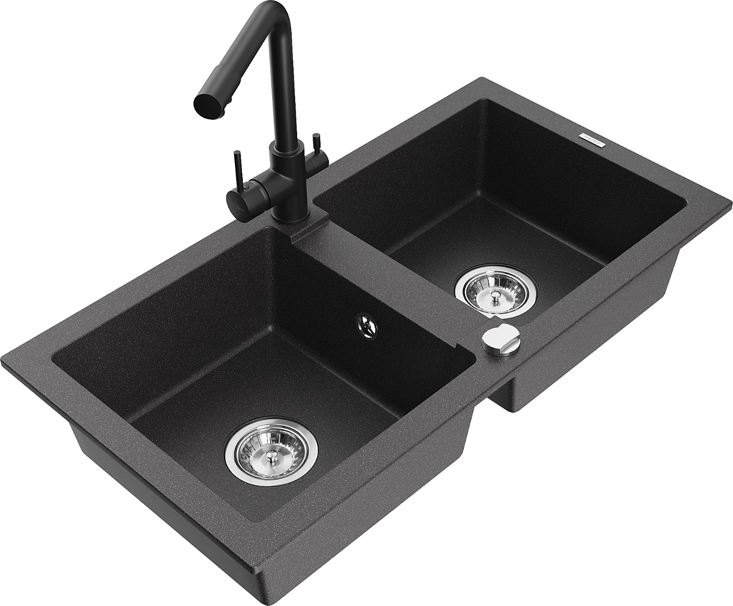 Mexen Mario 2-medencés gránit mosogató Duero konyhai csapteleppel, fekete pöttyös - 6504-76-671600-70