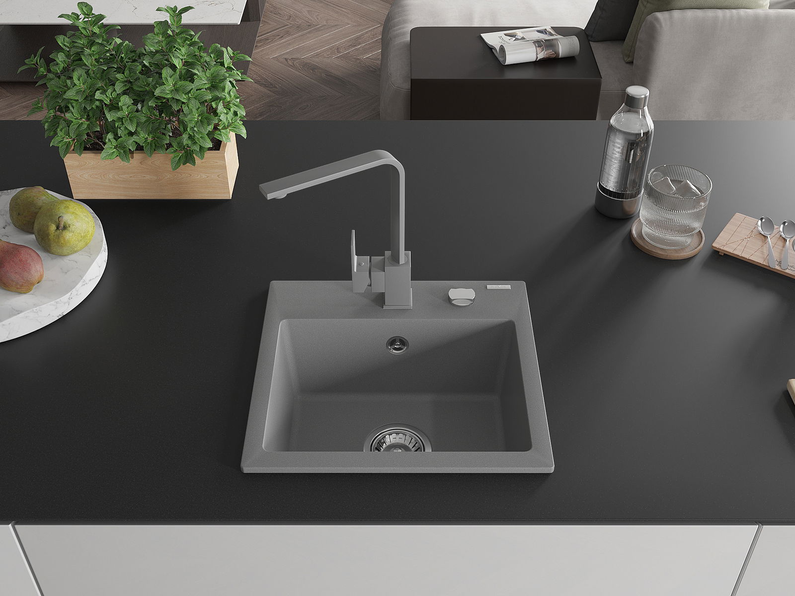 Mexen Milo 1-medencés gránit mosogató Rita konyhai csappal, szürke - 6505-71-670300-71