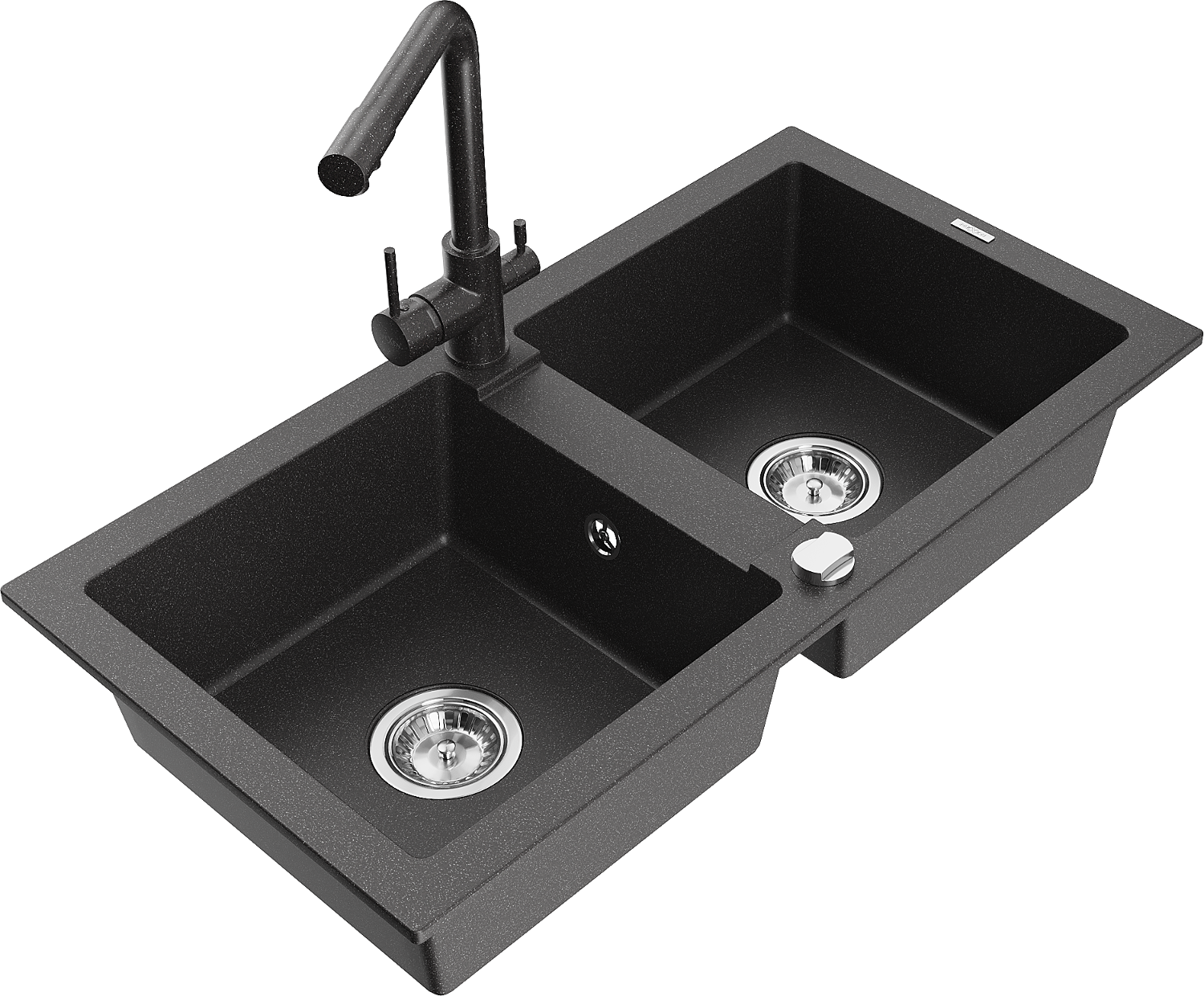 Mexen Mario 2 rekeszes gránit mosogató Duero konyhai csapteleppel, fekete pöttyözött - 6504-76-671600-76