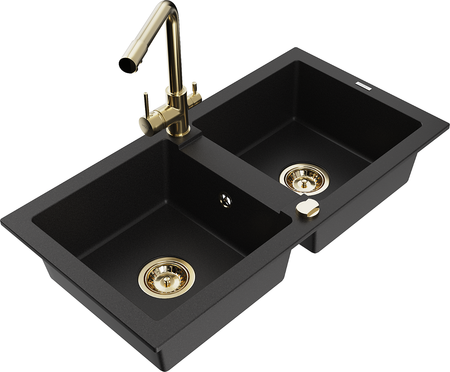 Mexen Mario 2 rekeszes gránit mosogató Duero konyhai csapteleppel, fekete - 6504-77-671600-50