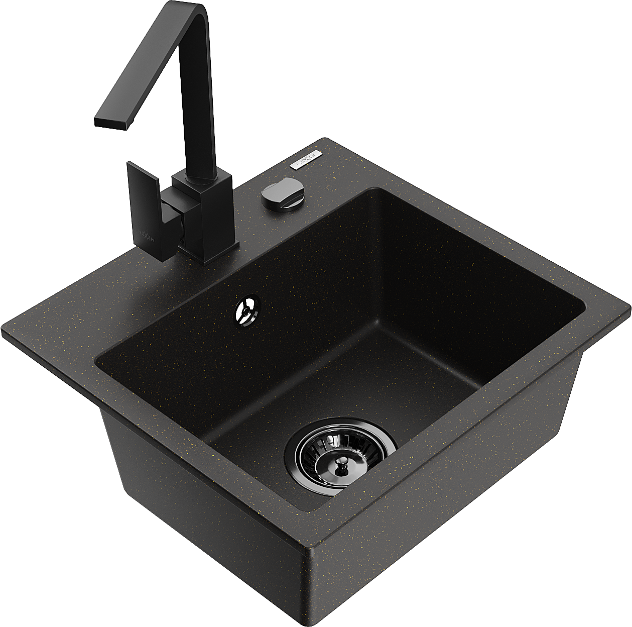Mexen Milo 1 kamrás gránit mosogató Rita konyhai csapteleppel, fekete/arany metál - 6505-75-670300-70-B