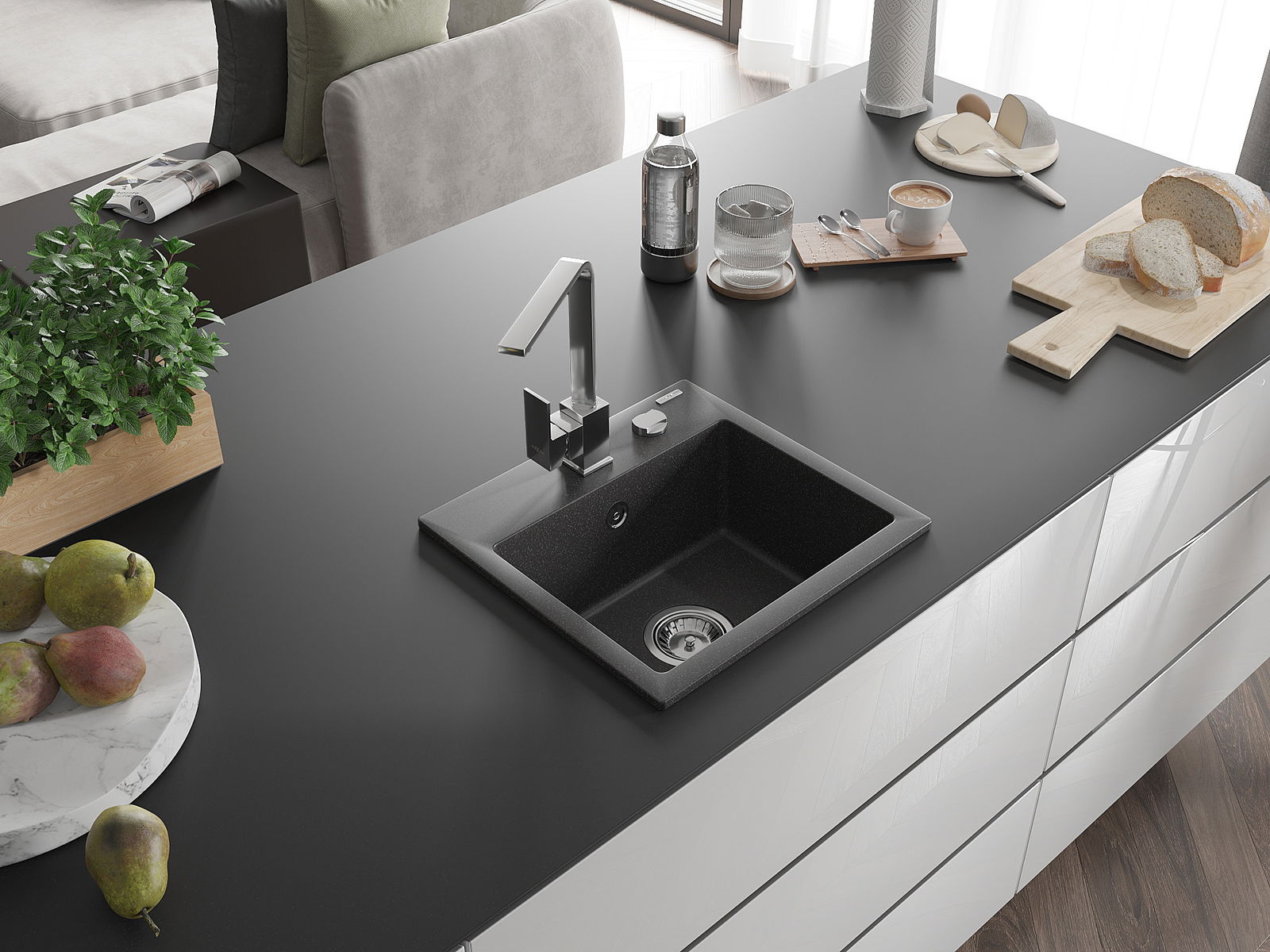 A mosogató kiváló minőségű gránitból készül. Ez egy elegáns és mindenekelőtt minden konyhához praktikus kiegészítés, stílusától függetlenül. A kiváló minőségű és a gránit tartósság biztosítja a sok éves használatát.