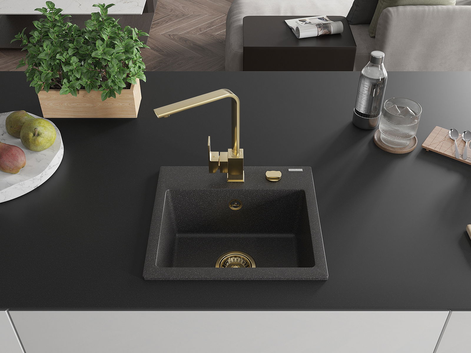 Mexen Milo egykamrás gránit mosogató Rita konyhai csapteleppel, fekete pöttyös - 6505-76-670300-50