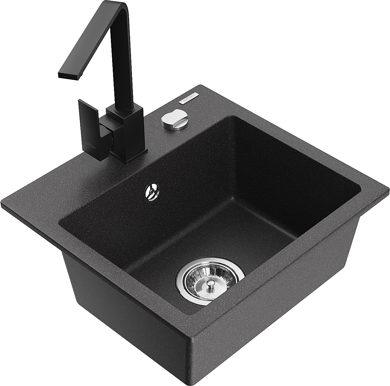 Mexen Milo 1 rekeszes gránit mosogató Rita konyhai csapteleppel, fekete foltos - 6505-76-670300-70