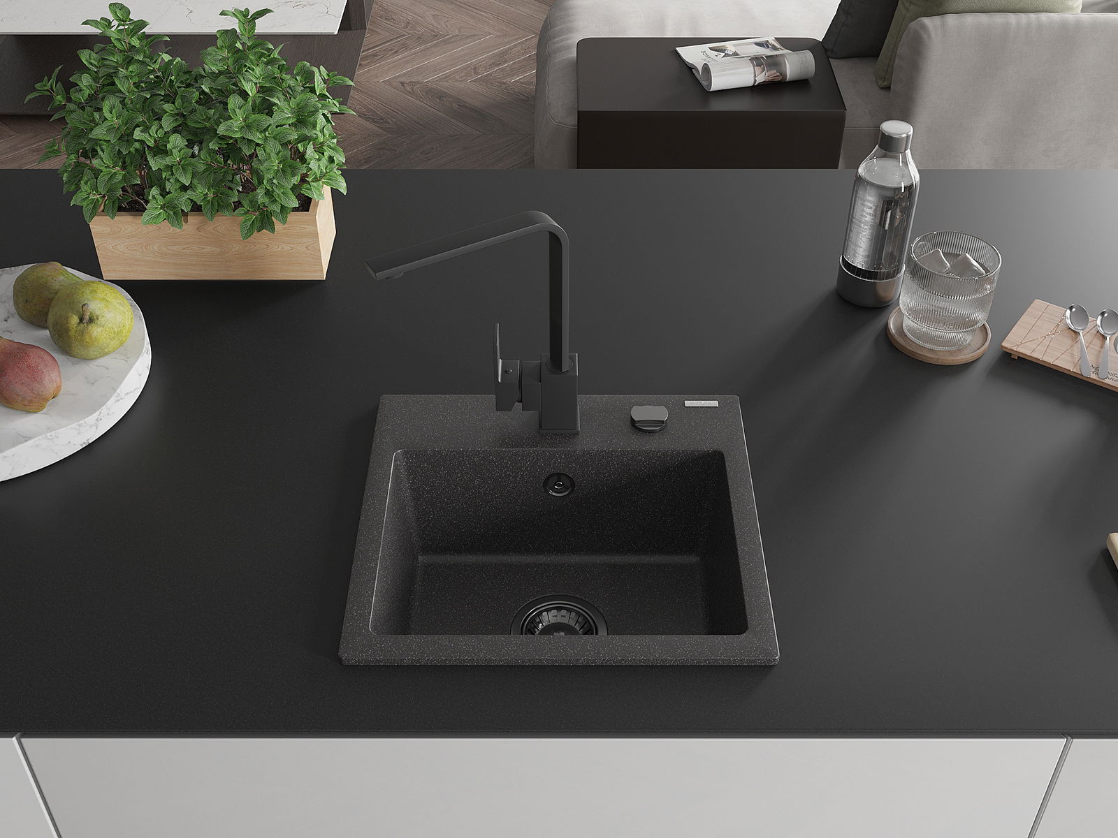 A mosogató kiváló minőségű gránitból készül. Ez egy elegáns és mindenekelőtt minden konyhához praktikus kiegészítés, stílusától függetlenül. A kiváló minőségű és a gránit tartósság biztosítja a sok éves használatát.