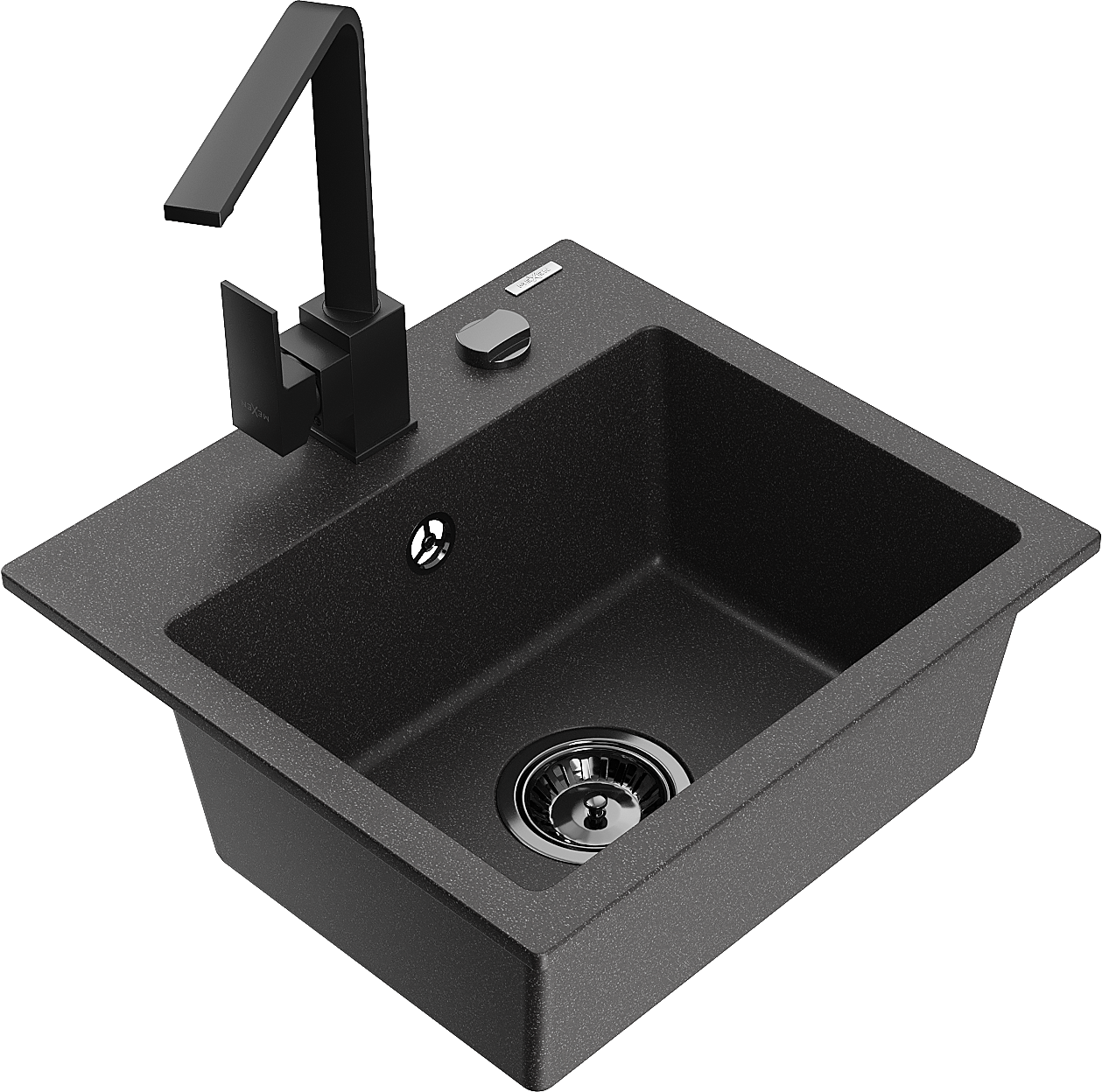 Mexen Milo 1-medencés gránit mosogató Rita konyhai csapteleppel, fekete pöttyös - 6505-76-670300-70-B