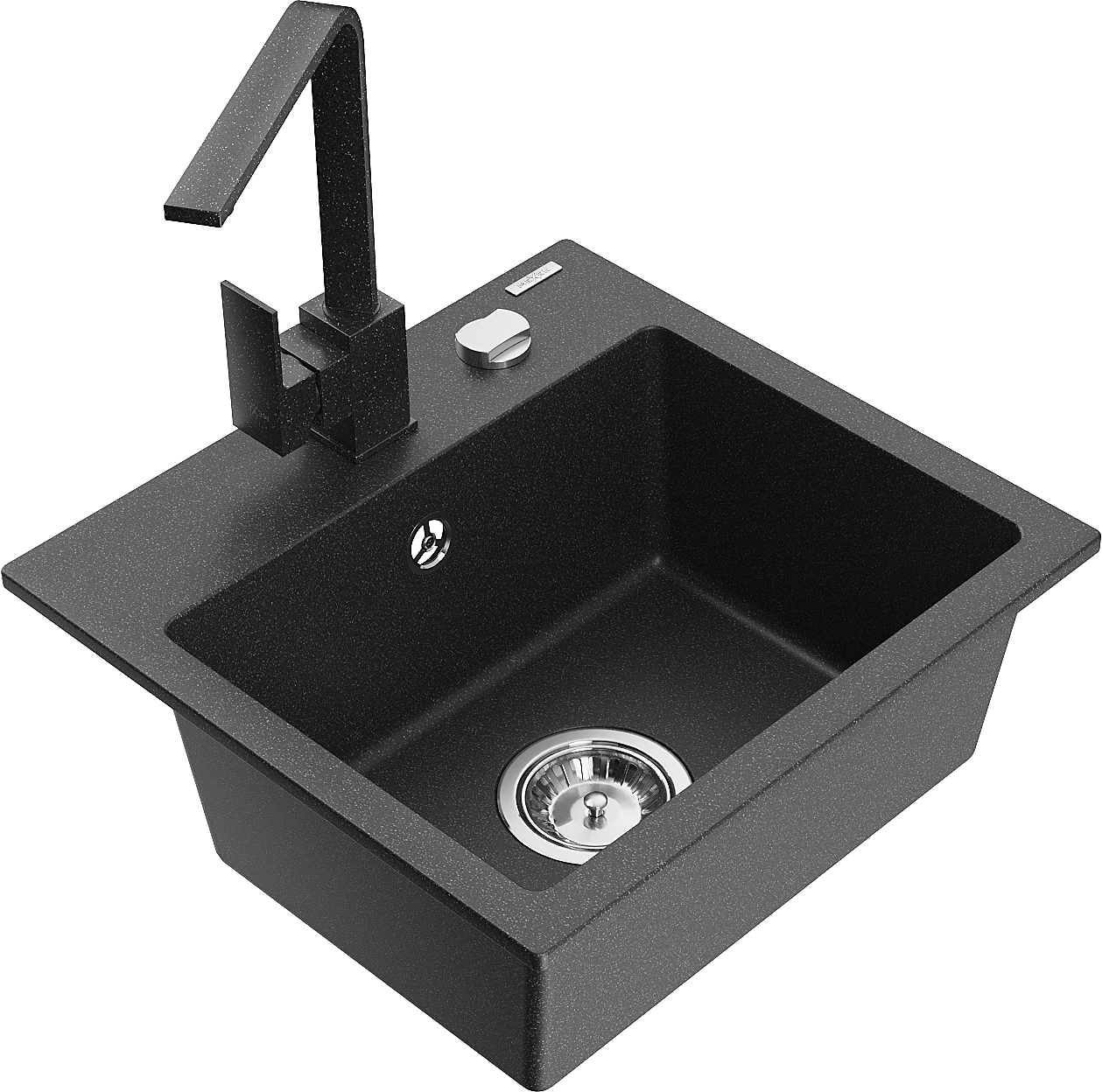Mexen Milo gránit mosogató 1-medencés konyhai csapteleppel Rita, fekete pöttyözött - 6505-76-670300-76