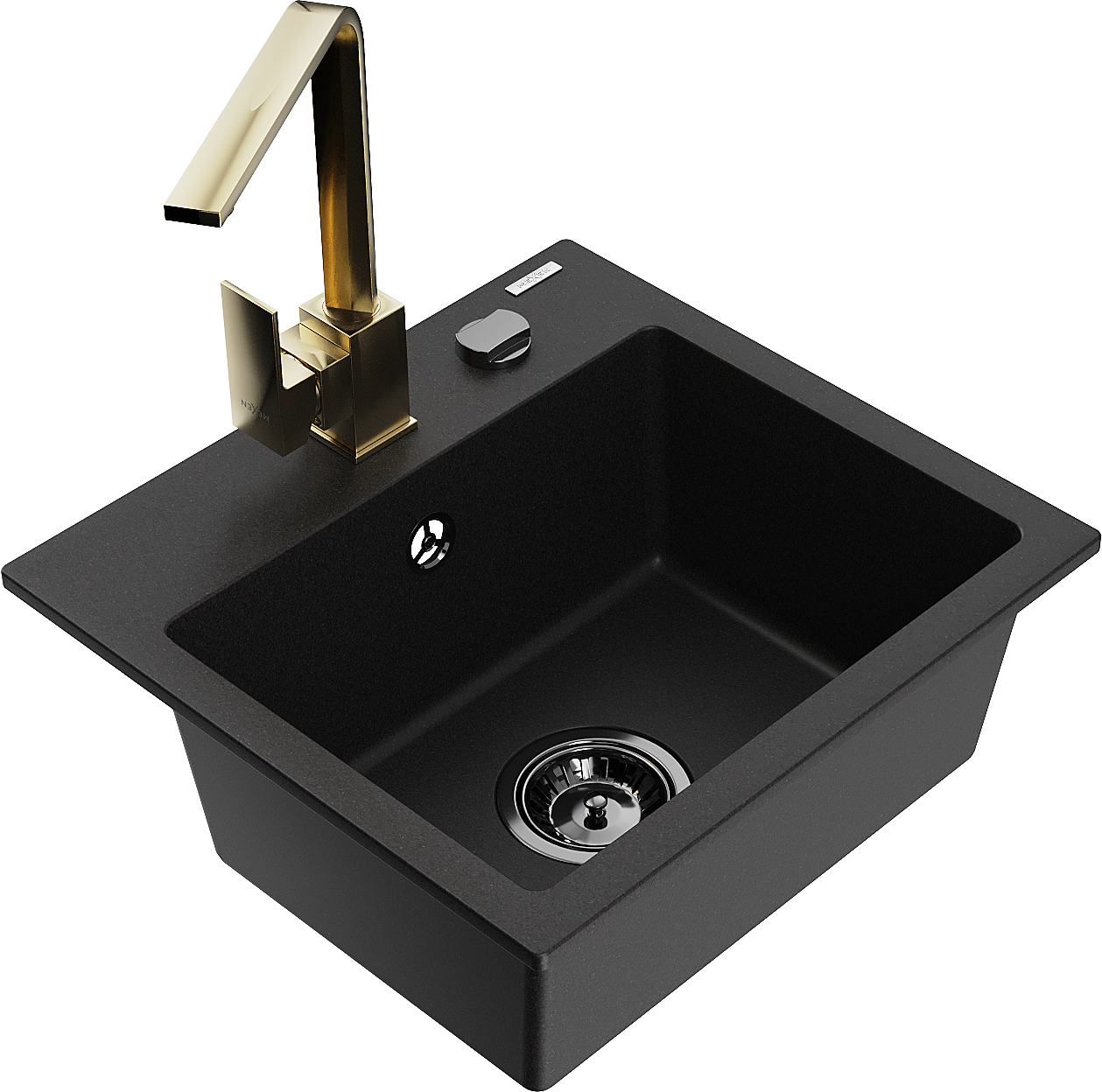 Mexen Milo egymedencés gránit mosogatótálca konyhai csappal Rita, fekete - 6505-77-670300-50-B