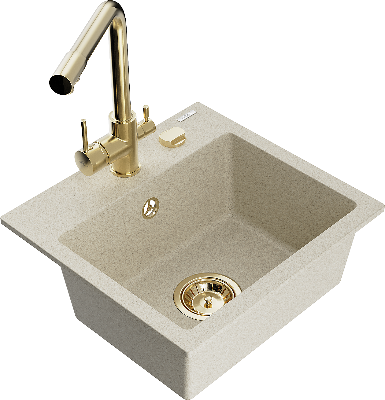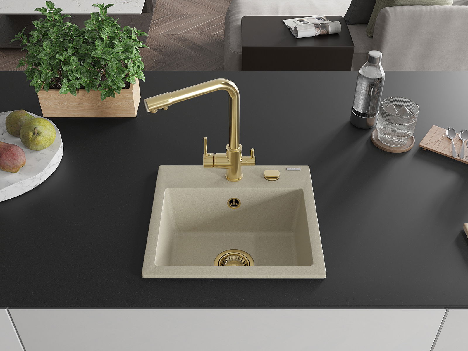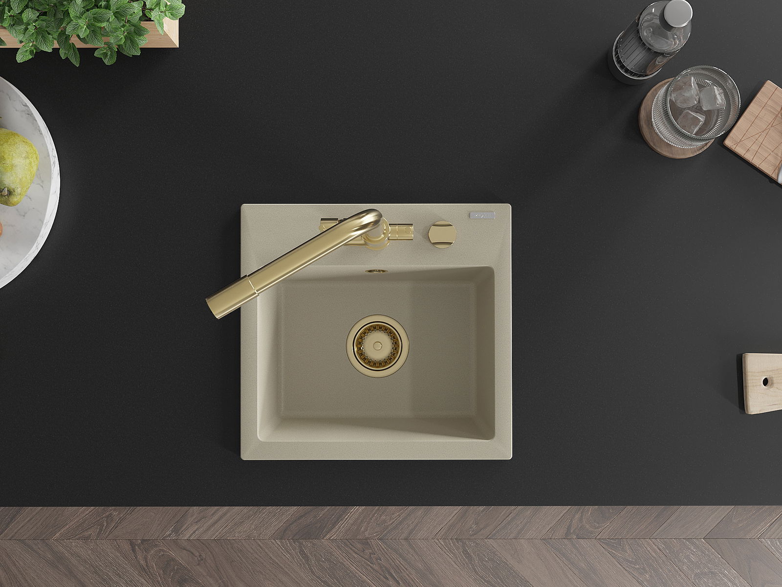 Mexen Milo 1-medencés gránit mosogató Duero konyhai csapteleppel, bézs - 6505-69-671600-50