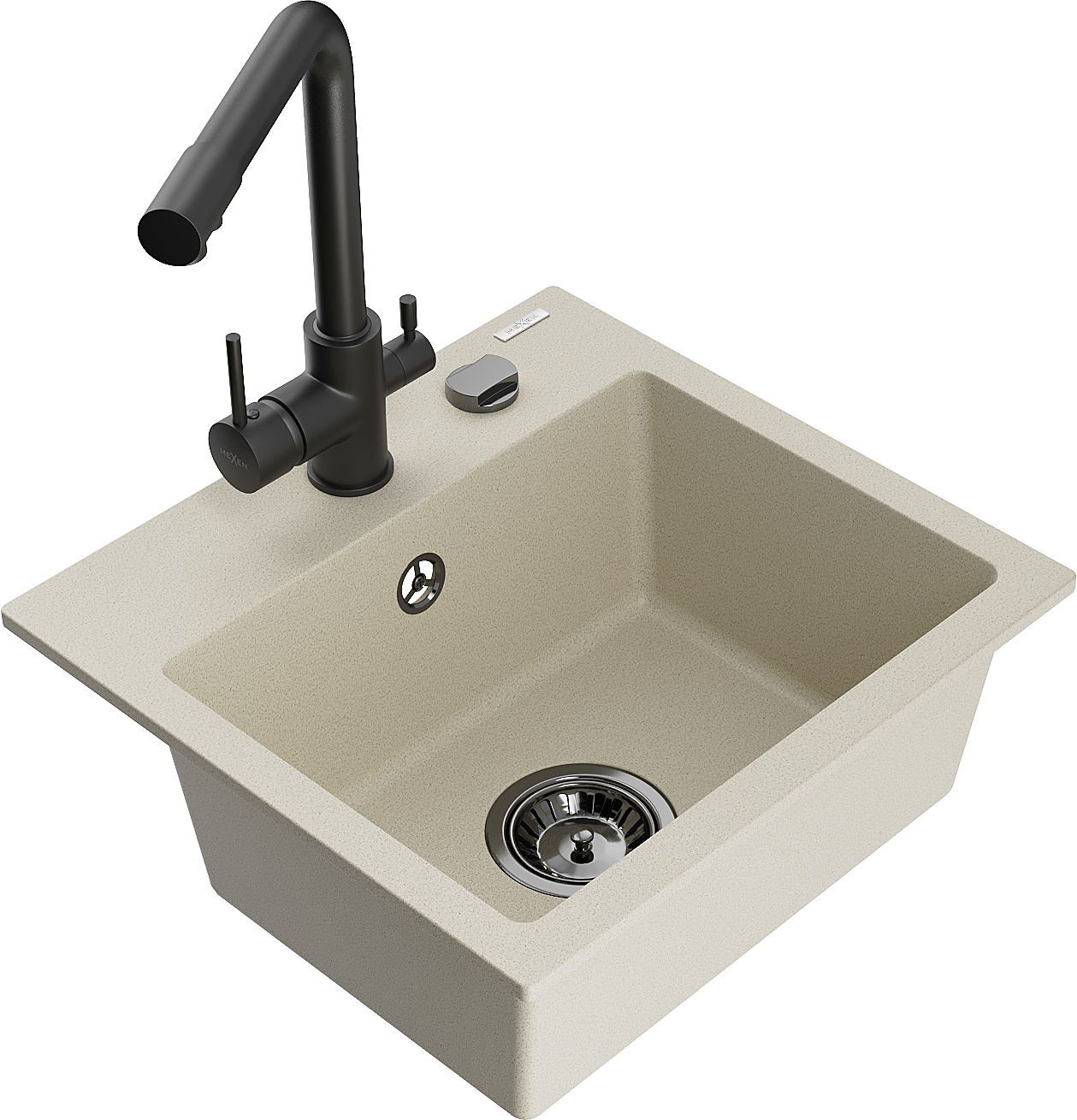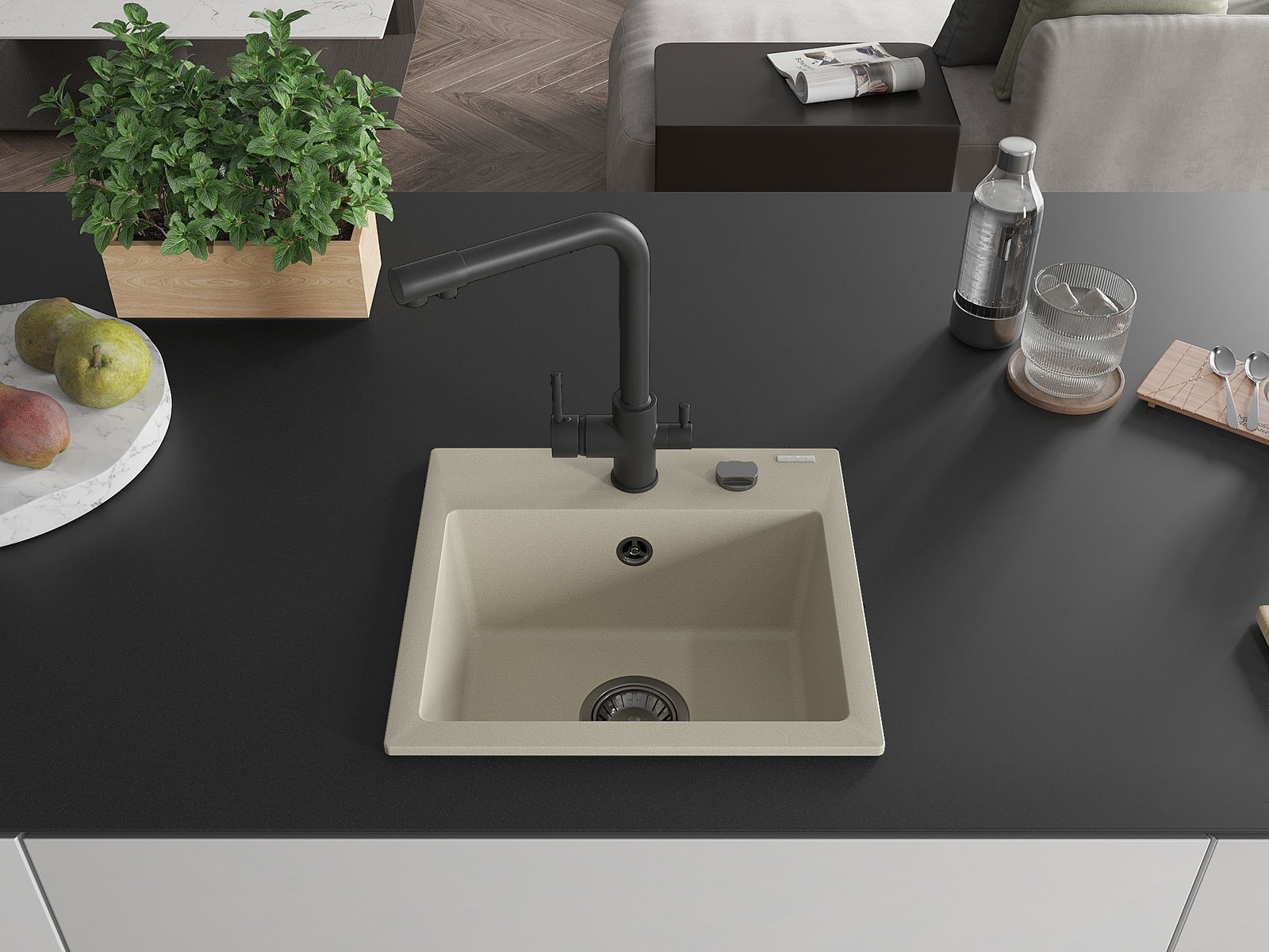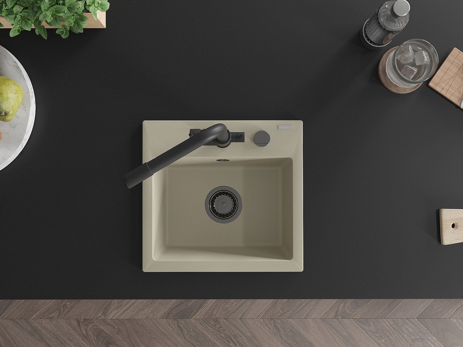 A mosogató magas minőségű gránitból készült. Elegáns, de mindenekelőtt praktikus kiegészítője minden konyhának, függetlenül annak stílusától. A gránit magas minősége és tartóssága hosszú távú használatot biztosít.