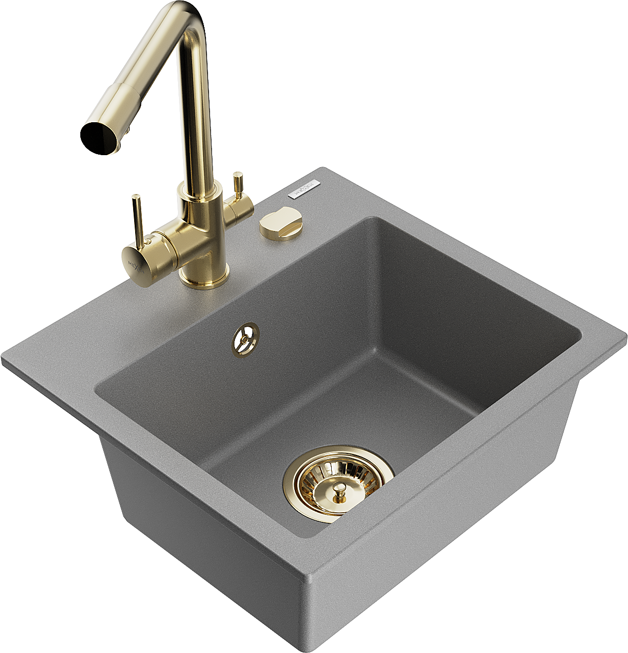Mexen Milo 1-medencés gránit mosogató Duero konyhai csappal, szürke - 6505-71-671600-50