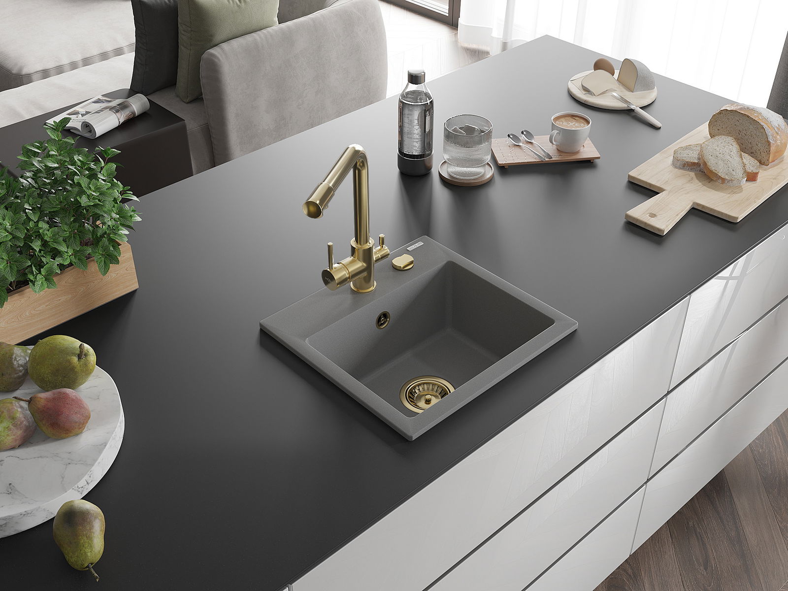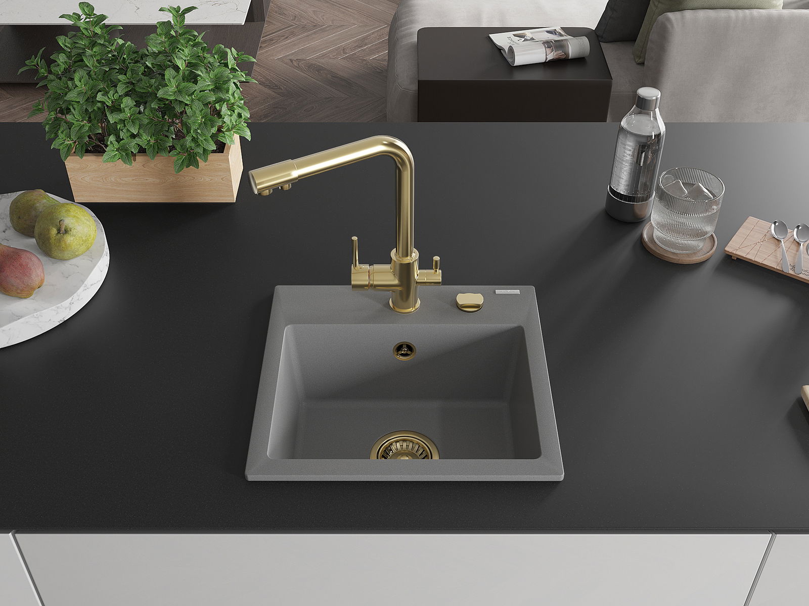 A mosogató magas minőségű gránitból készült. Elegáns, de mindenekelőtt praktikus kiegészítője minden konyhának, függetlenül annak stílusától. A gránit magas minősége és tartóssága hosszú távú használatot biztosít.