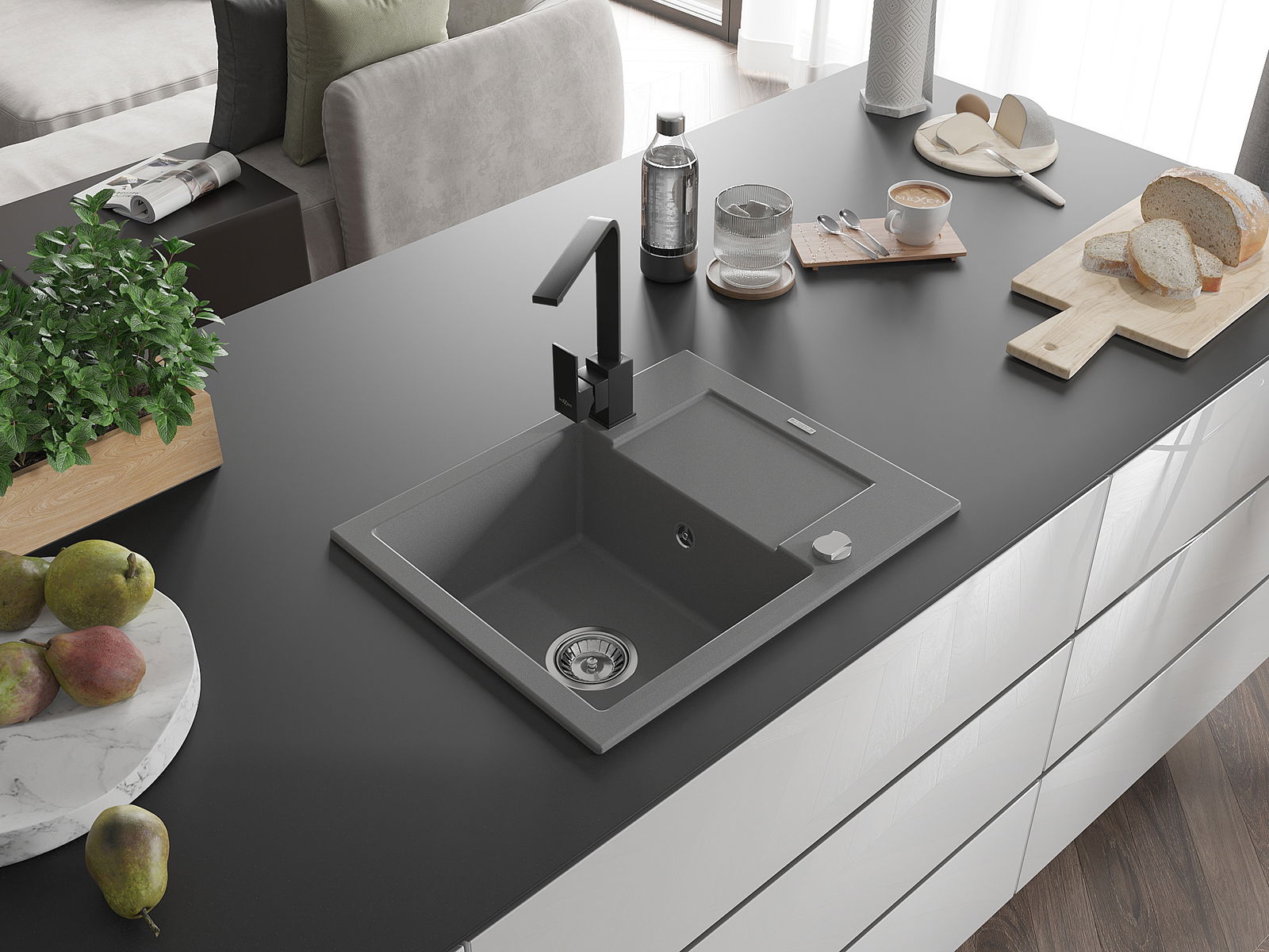 A mosogató magas minőségű gránitból készült. Elegáns, de mindenekelőtt praktikus kiegészítője minden konyhának, függetlenül annak stílusától. A gránit magas minősége és tartóssága hosszú távú használatot biztosít.