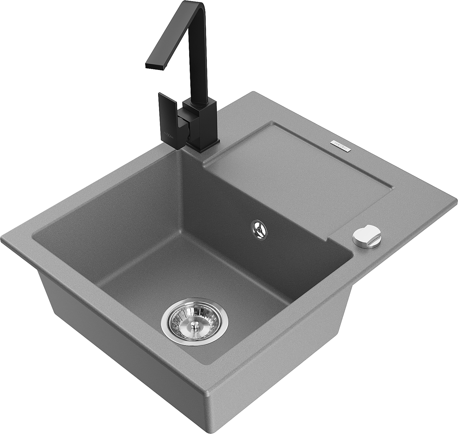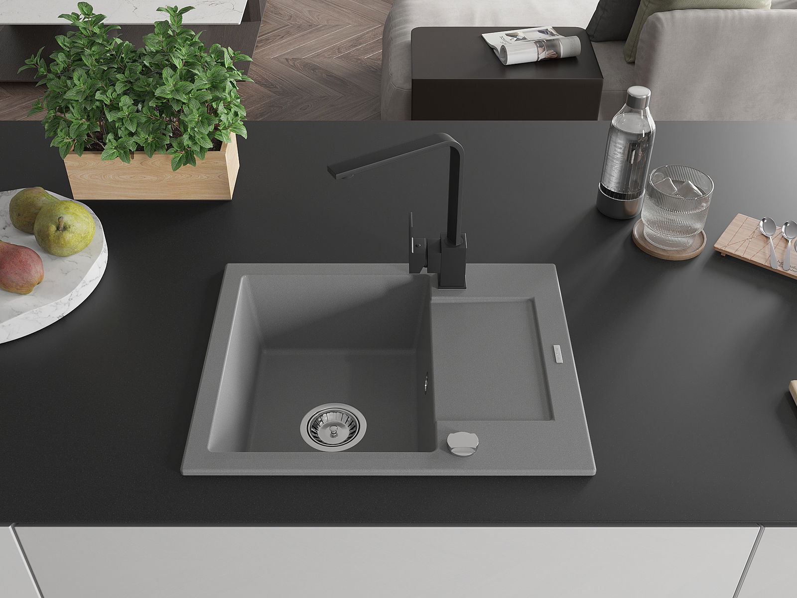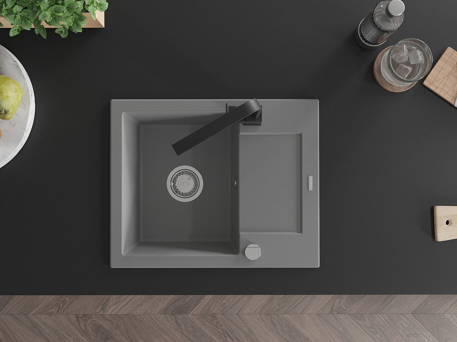 Mexen Enzo 1 rekeszes, csepegtetős gránit mosogató és Rita konyhai csaptelep, szürke - 6506-71-670300-70