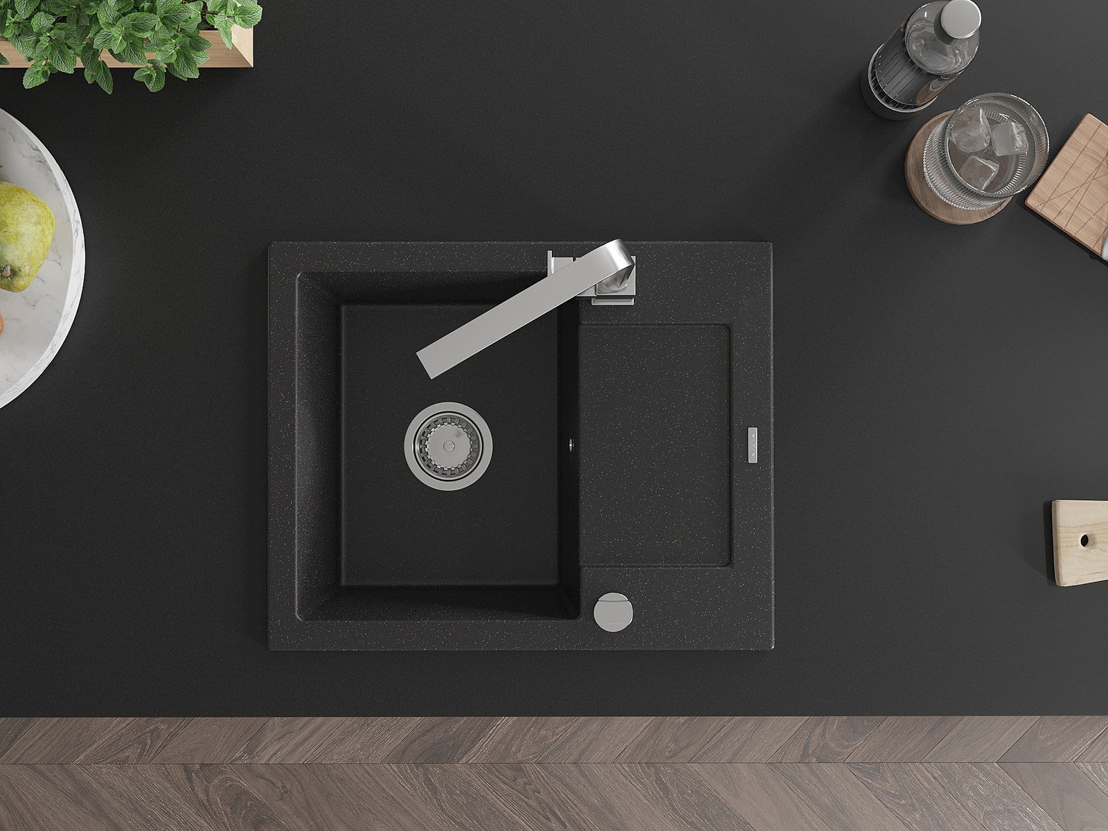 A mosogató kiváló minőségű gránitból készül. Ez egy elegáns és mindenekelőtt minden konyhához praktikus kiegészítés, stílusától függetlenül. A kiváló minőségű és a gránit tartósság biztosítja a sok éves használatát.